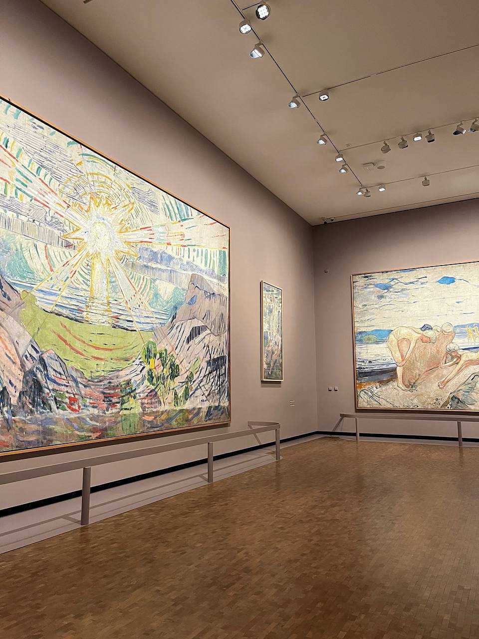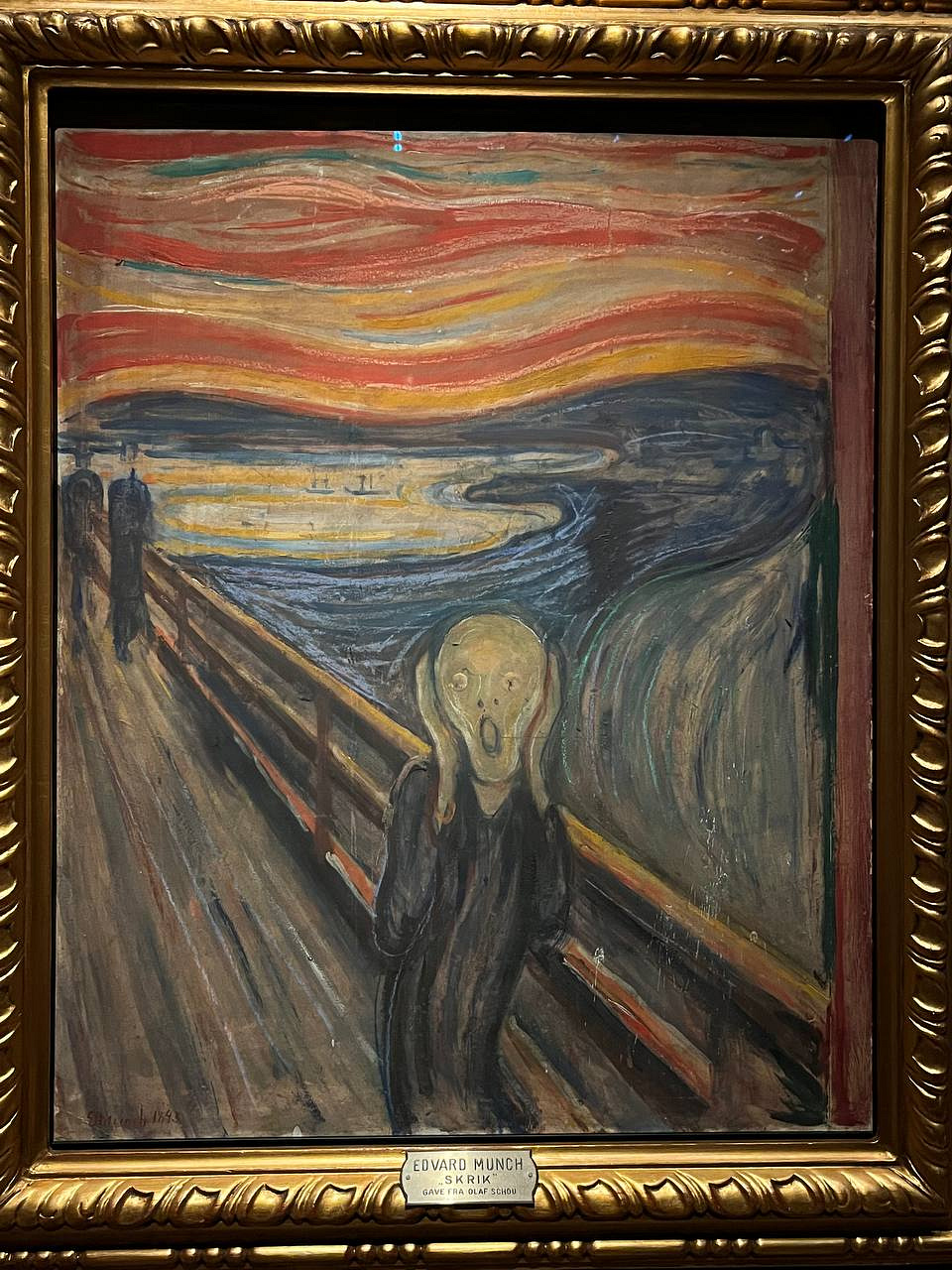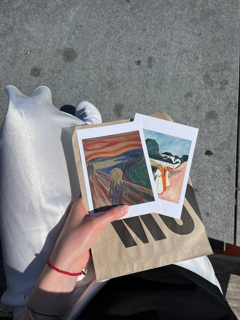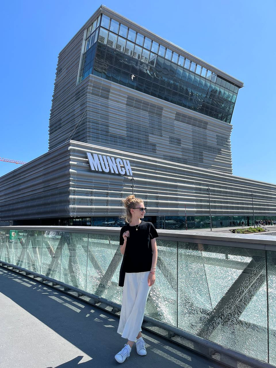 Музей Мунка. Сюди я хотіла потрапити найбільше. Едвард Мунк, мій улюблений норвезький експресіоніст, перед смертю заповідав усі свої роботи місту, так 1963 року і з`явився перший музей живописця, який виставляє величезну колекцію його робіт, 2020-го відкрили новий — і це справжній шедевр сучасної архітектури, який перетворив образ міста, пропонуючи всім шанувальникам творчості Мунка відвідати віртуальні екскурсії. Виставлені тут експонати для багатьох стають справжнім відкриттям: Мунк створив багато творів окрім всесвітньо відомої картини «Крик». Мені врізалися в памʼять ще «Дівчата на мосту» та «Танець». До речі, Мунк має чотири версії картини «Крик». Головна висить у Національній галереї Осло. У Музеї Мунка виставлено дві інші.