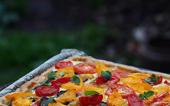 Сегодня готовим пирог – такой, который и для обеда на работу можно взять и на выходных – в гости. Вкусный и простой: нежные овощи на хрустящем песочном тесте – красота!