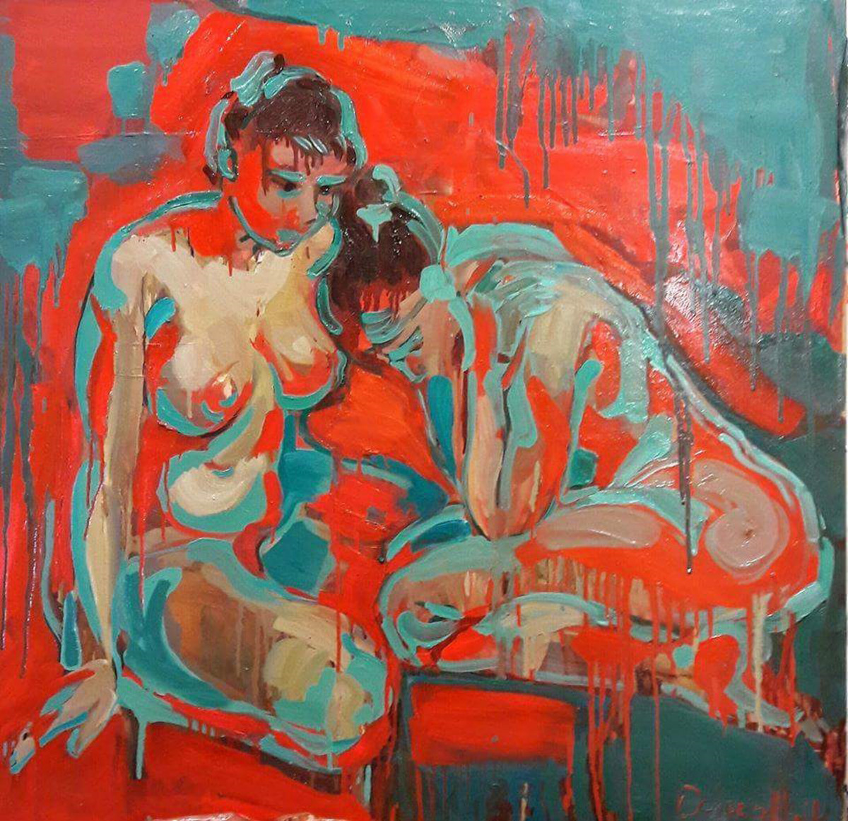 Художниця Тамара Турлюн використовує досить обмежений, скупий інструментар. Червона фарба, близька до червоної вохри, одного з базових піґментів з прадавніх часів виникнення живопису. Білясте й шорстке біле тло — як простокувата вапняна штукатурка. Плавні узагальнені обриси, крупні мазки. Відсутня перспектива і строга композиція. В центрі більшості робіт — чоловік і жінка. Такі собі позачасові «Адам і Єва», базові персонажі світової культури усіх часів та народів гендерно-нормативної ери. Але стать у героїв Турлюн видається оманливою категорією. Попри ілюстративне, по-дитячому наочне зображення статевих органів, герої ніби зроблені з одного тіста. Ці майже ідентичні, мʼяко примітизовані тіла й обличчя — точно не про стереотипні фізіологічні ролі та сценарії.