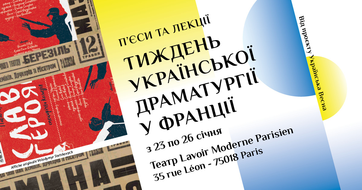 Тиждень української драматургії — партнерський проєкт «Української Весни» та театру Lavoir Moderne Parisien. Протягом чотирьох вечорів французькі актори читатимуть шість п`єс українських драматургів французькою мовою. Усі пʼєси були перекладені спеціально для тижня драматургії. Будуть представлені п’ять оригінальних сучасних історій — «Сім перших робіт Аліни» та «Я норм» Ніни Захоженко, «Слава героям» Павла Ар’є, «Крізь шкіру» Наталії Блок, «Сповідь українки» Марії Ісакової та «філологічна» трагікомедія творця української «модерної драми» Миколи Куліша «Мина Мазайло».