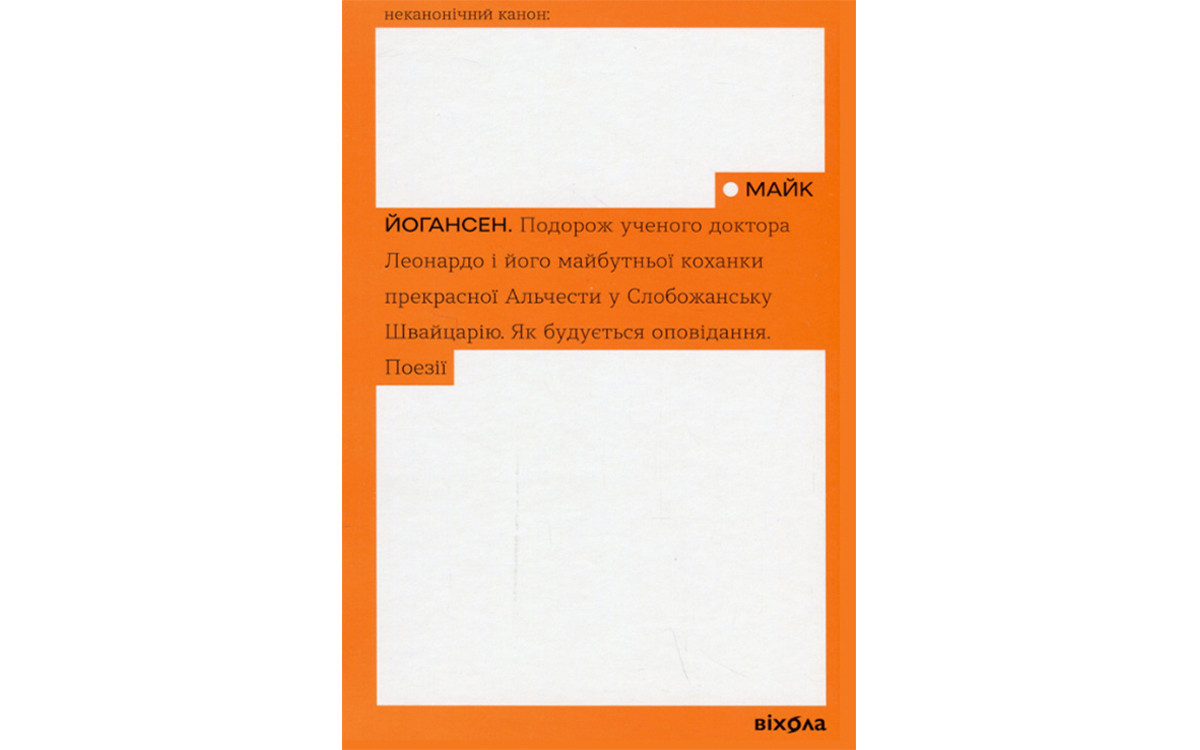 Майк Йогансен — український письменник-авангардист. Стиль його творчості — ламати правила та з їхніх уламків витворювати нову поетику. У цій книжці ви знайдете твори, які стали візитівкою Йогансена, — іронічний, пародійний роман «Подорож ученого доктора Леонардо і його майбутньої коханки прекрасної Альчести у Слобожанську Швайцарію», ключовий для розуміння творчого підходу автора текст «Як будується оповідання» та вибрані поезії.