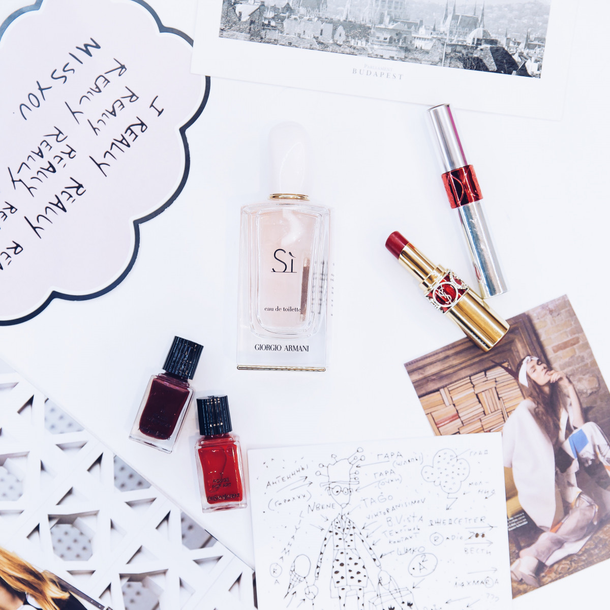 Парфюмированная вода Giorgio Armani Si, 100 мл – 3299 грн, лак для ногтей Yves Saint Laurent Beauty – 790 грн, помада Yves Saint Laurent Beauty – 1080 грн, блеск для губ Yves Saint Laurent Beauty – 940 грн. Все 1й этаж ЦУМа