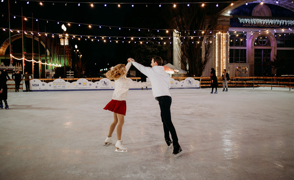 Одна з найбільших і найпопулярніших ковзанок Києва, на яку варто завітати за святковим настроєм, якщо ви ще досі його не отримали. Знаходиться вона на щорічному фестивалі «Зимова країна» на ВДНГ, тож ви точно знайдете, чим зайнятися після катання: льодовий майданчик зусібіч оточують прикрашені фудкорти, фотозони з ялинками та інші атракціони. Сама ковзанка також прикрашена ліхтариками й тематичними декораціями.