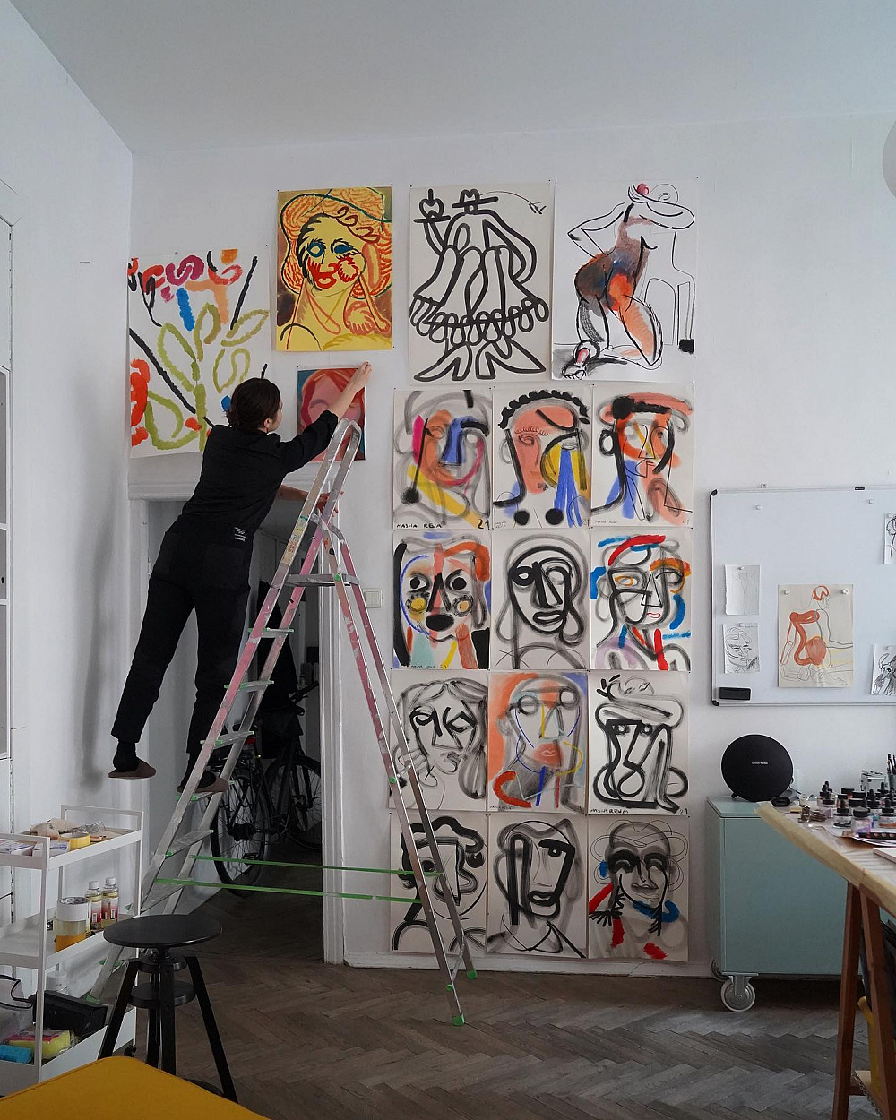 «Мої роботи — це такі механізми сумніву. Спочатку я переробляю реальність, виношу все назовні, а після робота залишається якоюсь "думкою, що думає саму себе" у зовнішньому світі, без моєї участі. Я люблю малювати в будь-якому місці, де можна поставити планшет із папером або сісти з блокнотом та олівцем», — описує свої роботи Кадан.