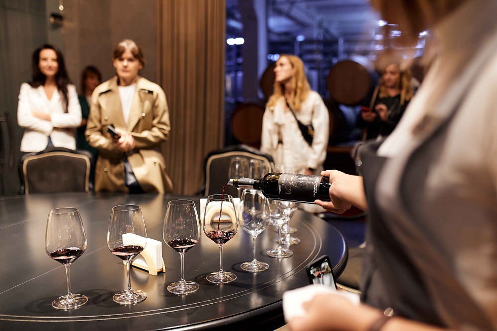После сбора урожая все мы занялись подготовкой именной этикетки на бутылку напитка, виноград для которой собрали всей компанией. А затем уставшие и довольные собой отправились на дегустацию в зал «Фамильный резерв», который расположен в старинном хранилище под землей, на глубине пять метров.