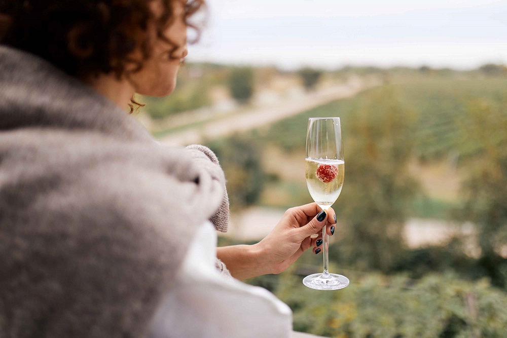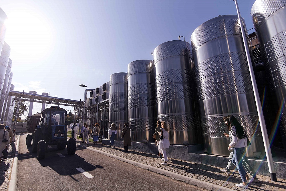 Мы с наслаждением смаковали прохладные вкусы игристого экстра брют Vaja Grand Cru и Muscat Special Edition SHABO, и все это под аккомпанемент сладкой бессарабской клубники. Тут же глаз радовал открывающийся с террасы Дома игристых вин вид на бескрайние поля виноградников хозяйства.