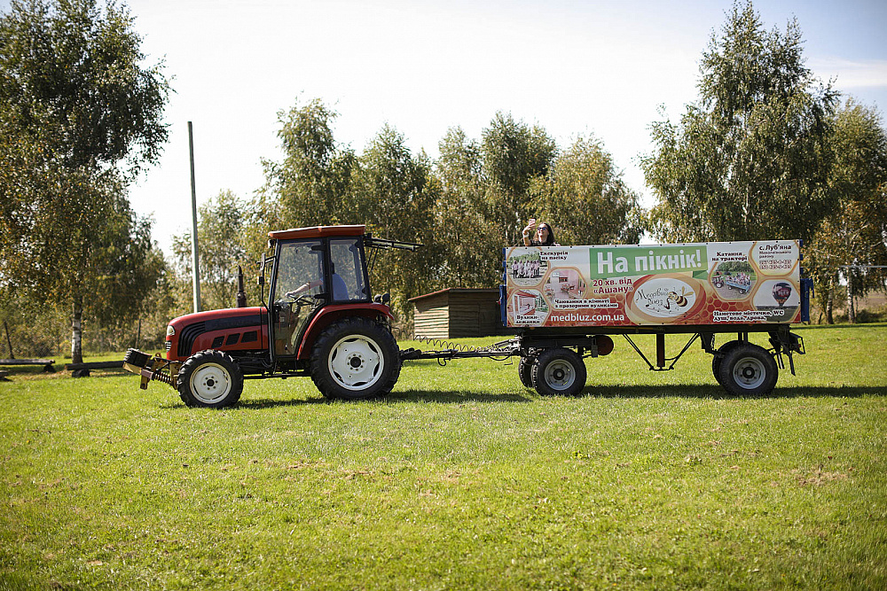 Після молочної ферми учасники завітали до відпочинкового комплексу «Медовий блюз». Тут можна замовити екскурсію, яка триває 1,5 години. Вона розпочинається з розповіді про життя бджолиної сім’ї та роботу пасічника, а після захопливої екскурсії гості перевдягаються в захисні костюми та відправляються на пасіку. Охочим пропонують звичний для пасік сон на вуликах (апітерапію) та незвичне чаювання в кімнаті з прозорими вуликами, де можна спостерігати, чим займаються бджоли у своїх домівках. Фірмовою фішкою є питний мед — алкогольний напій, зварений за старовинним рецептом.