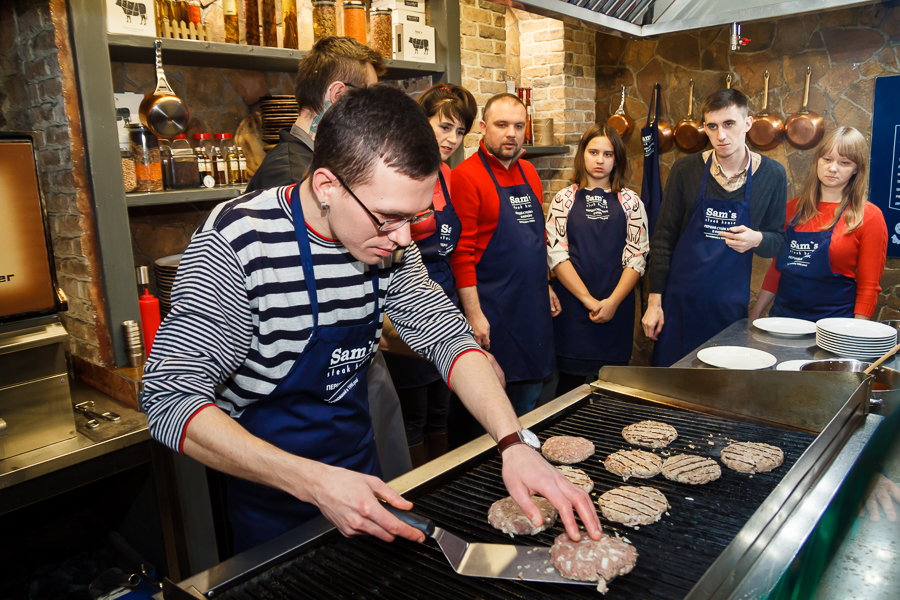 Кулинарные мастер-классы проводятся по субботам с 13:00 до 16:00 в ресторане Sam's Steak House: