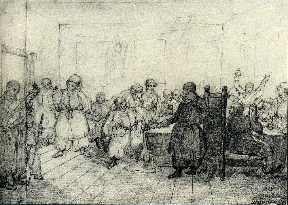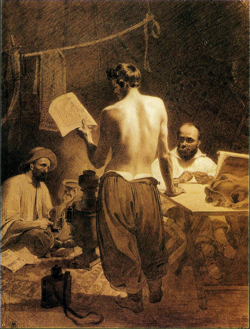 Після арешту у 1847 році Тарасу заборонили малювати, проте у своїх листах до друзів він вже ж просив надіслати йому хоч якийсь інвентар для малювання, оскільки не уявляв без цього свого життя. Зрештою допомога впливових прихильників дозволила Шевченку продовжувати таємно займатися творчістю упродовж десяти років заслання.