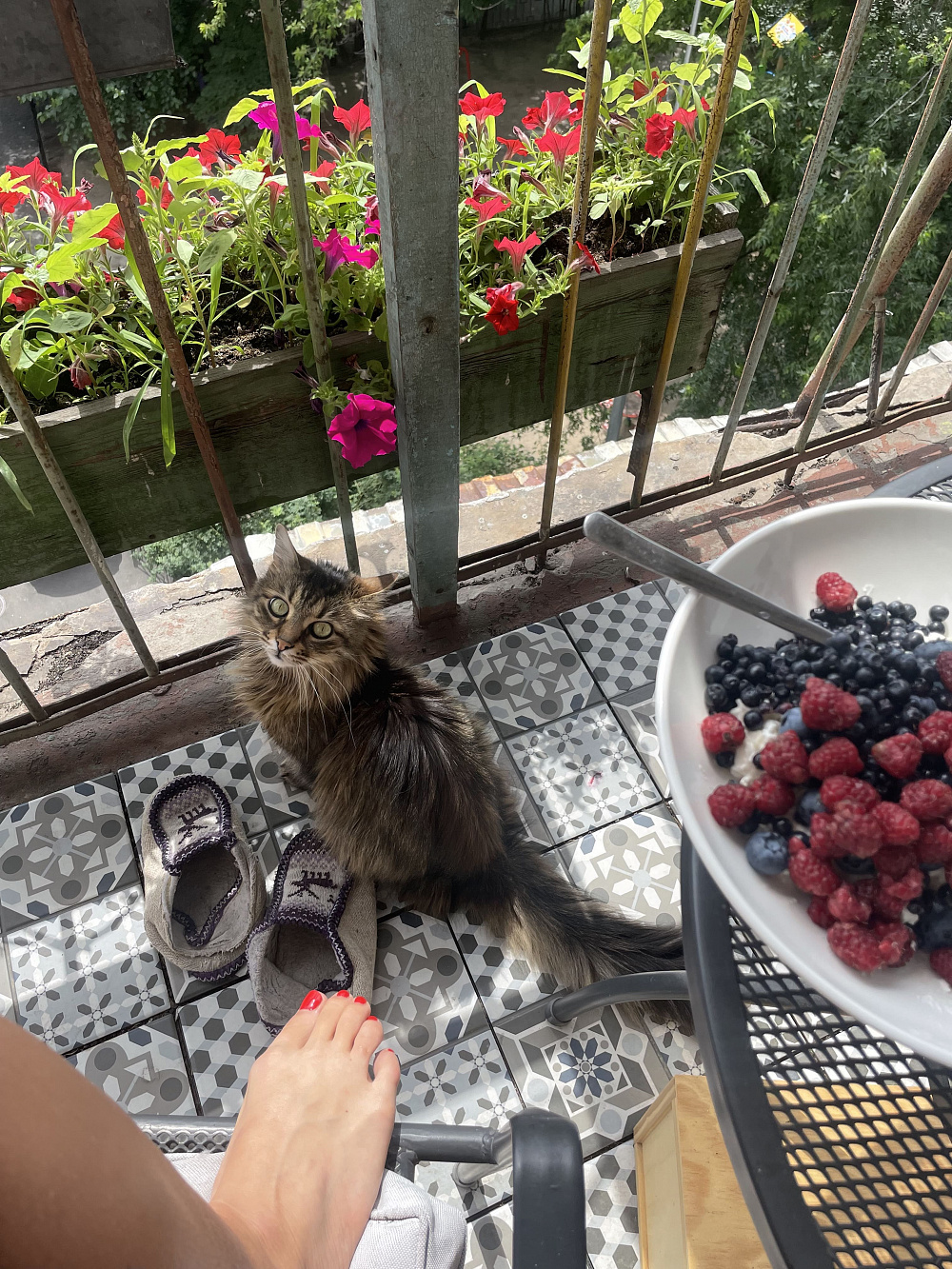 Мій балкон на Подолі на першому місці в цьому списку. Обожнюю висаджувати тут квіти, засмагати вранці, снідати з друзями, а ввечері стежити за ластівками та хмарами, що чіпляються за маківку церкви при Братському монастирі. Обожнюю повертатися ввечері та бачити на балконі силуєт голови та вушок свого кота в контражурі світла, яке я для нього залишаю. Обожнюю «робити базар» на Житньому ринку. Тільки не в суботу, а в будні, коли з місцевими жіночками є час завести більш теплі стосунки. А ще дуже люблю маршрути з Подолу «у світ». Через Воздвиженку на Пейзажну алею. Через фунікулер — у Старе місто та ботанічний сад. Через Андріївський узвіз, Алею художників, скляний та пішохідний мости — на пляжі Труханового острову. Ніколи не відчуваю себе самотньою, коли гуляю містом, хоча тут і неможливо залишитися наодинці із собою: в 90% випадків когось таки зустрінеш. І ще одне секретне місце, яке я відкрила для себе минулої осені, — лісопарк Максима Рильського. З озерами, святим джерелом і повним «ефектом відсутності» (в тому сенсі, що тут не відчуваєш себе в місті).