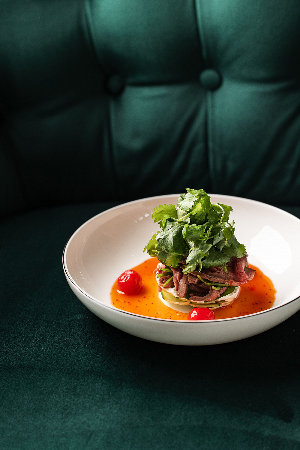 Меню Emerald налічує 12 розділів, в яких ви знайдете найколоритніші страви різних кухонь світу. Так, почати можна із середземноморських закусок, а потім перейти до італійського розпалу емоцій (тут і паста, і ризотто) або азійської ейфорії (татакі з лосося, лангустин темпура, пікантний том ям та японські роли).
