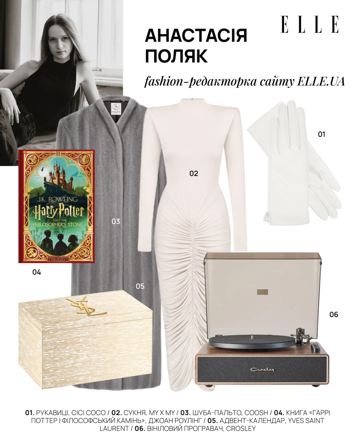 Для мене новорічний період — це портал, де минуле зустрічається з майбутнім, тому в цей час я особливо уважна до всього, що відбувається. І першими такими трансляторами для мене є речі, які завжди «говорять», хоч і мовчать. Тож я пройшлася по своєму XXL-вішлісту й обрала ті позиції, які зараз найбільше відгукуються.