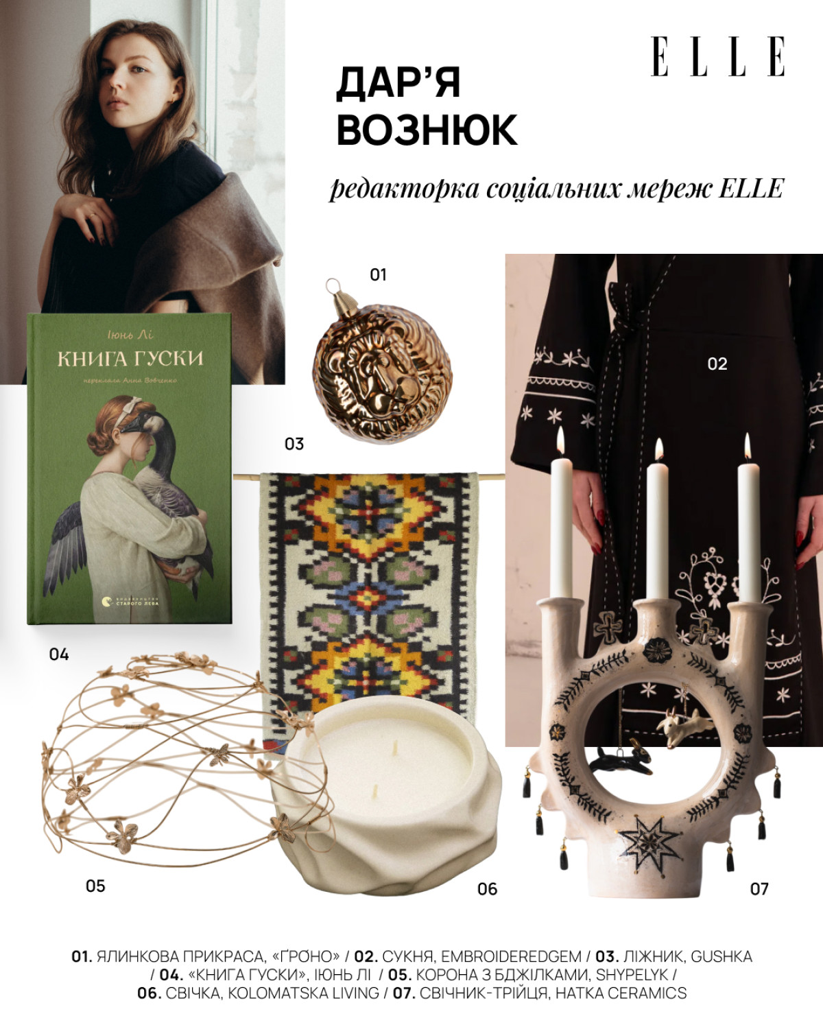 Один з обов’язкових пунктів кожного вішліста — підтримка українських брендів (зокрема, митців і початківців), тож щороку в моїх бажанках опиняються нові позиції від майстрів кераміки, килимарства та інші автентичні вироби, що несуть у собі особливий сенс, адже це ті речі, які ми згодом передаватимемо в спадок своїм дітям.