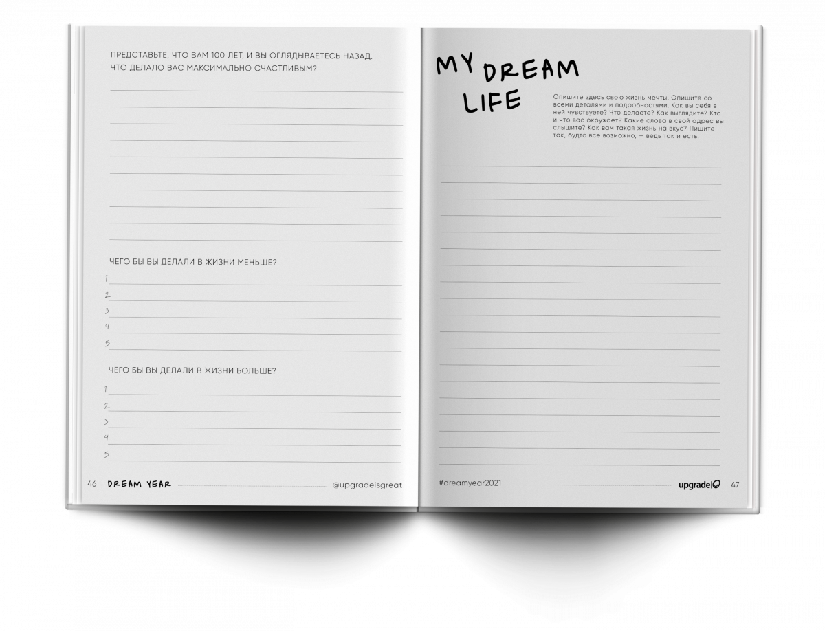 Подробный план на 2021 год включает детальное планирование каждой сферы вашей жизни в следующем году; 24 страницы для анализа результатов прошлого месяца и составления планов на следующий; 52 страницы для анализа каждой недели года, чтобы держать свои цели и мечты в фокусе и концентрироваться на успехах. Отличным дополнением к блокноту станет масштабный тренинг по целям и мечтам DreamYear 2021, который пройдет онлайн 20-22 декабря под руководством эксперта по счастью Аллы Клименко.