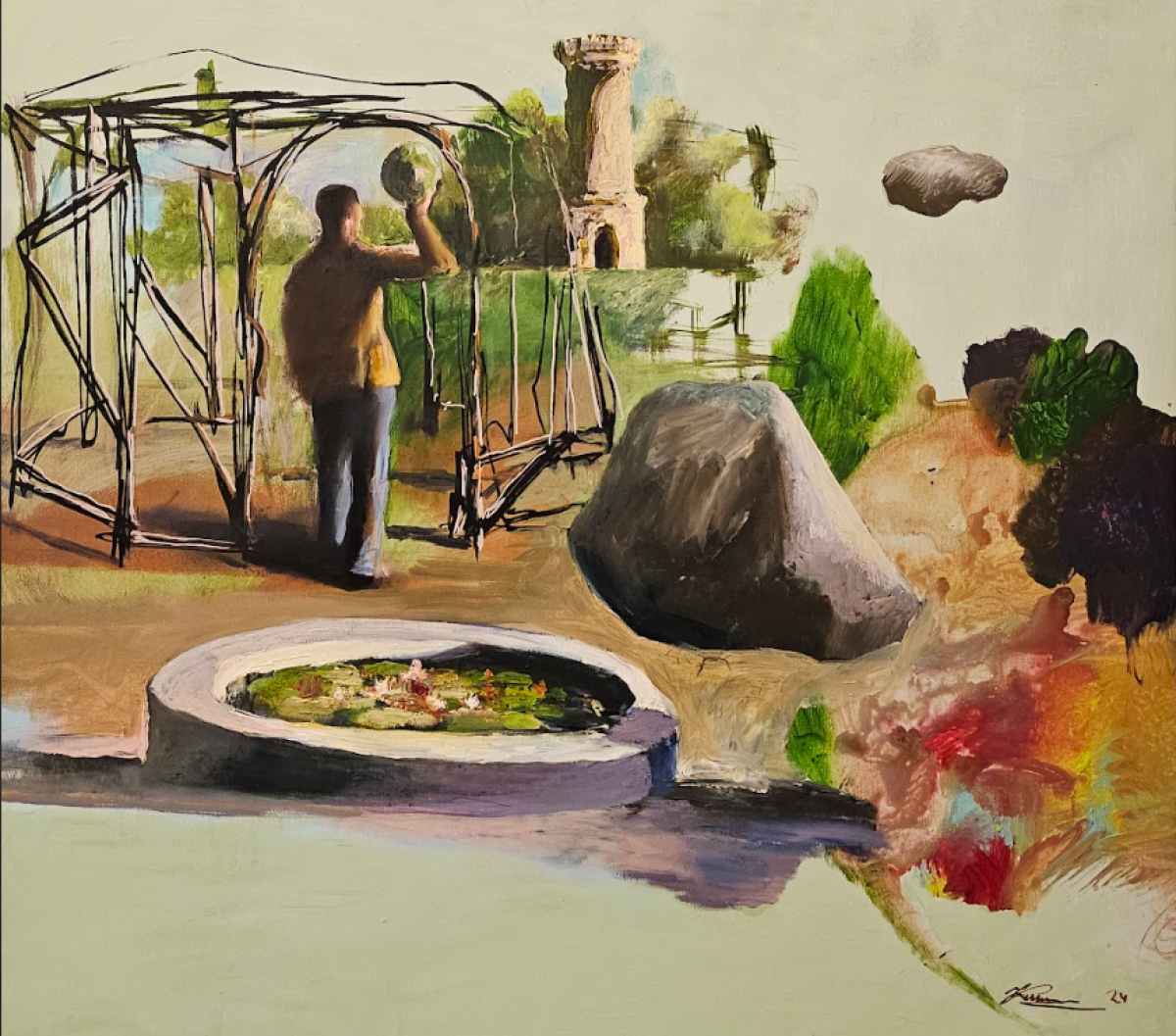 Євген Клименко — молодий живописець та графік, майстер експресивного живопису. Анна Придатко — мультидисциплінарна художниця, а Захар Шевчук здебільшого працює з олією і аквареллю. Разом вони створили інтерактивну виставку про розуміння своєї ролі у часі та просторі.
