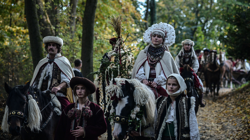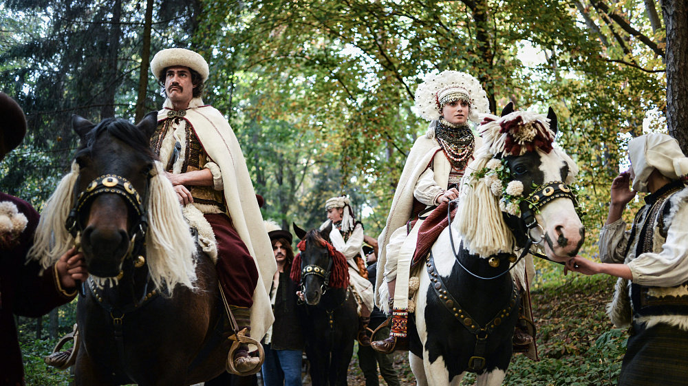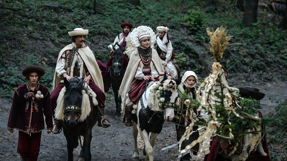 «А також були певні задачі від режисера. Наприклад, весільна корона Марічки. Олесь дуже хотів вінок з пірʼя, але ж у гуцулів такого не було! Тому самі для себе ми виправдовували це тим, що Марічка не місцева», — додає Гала.