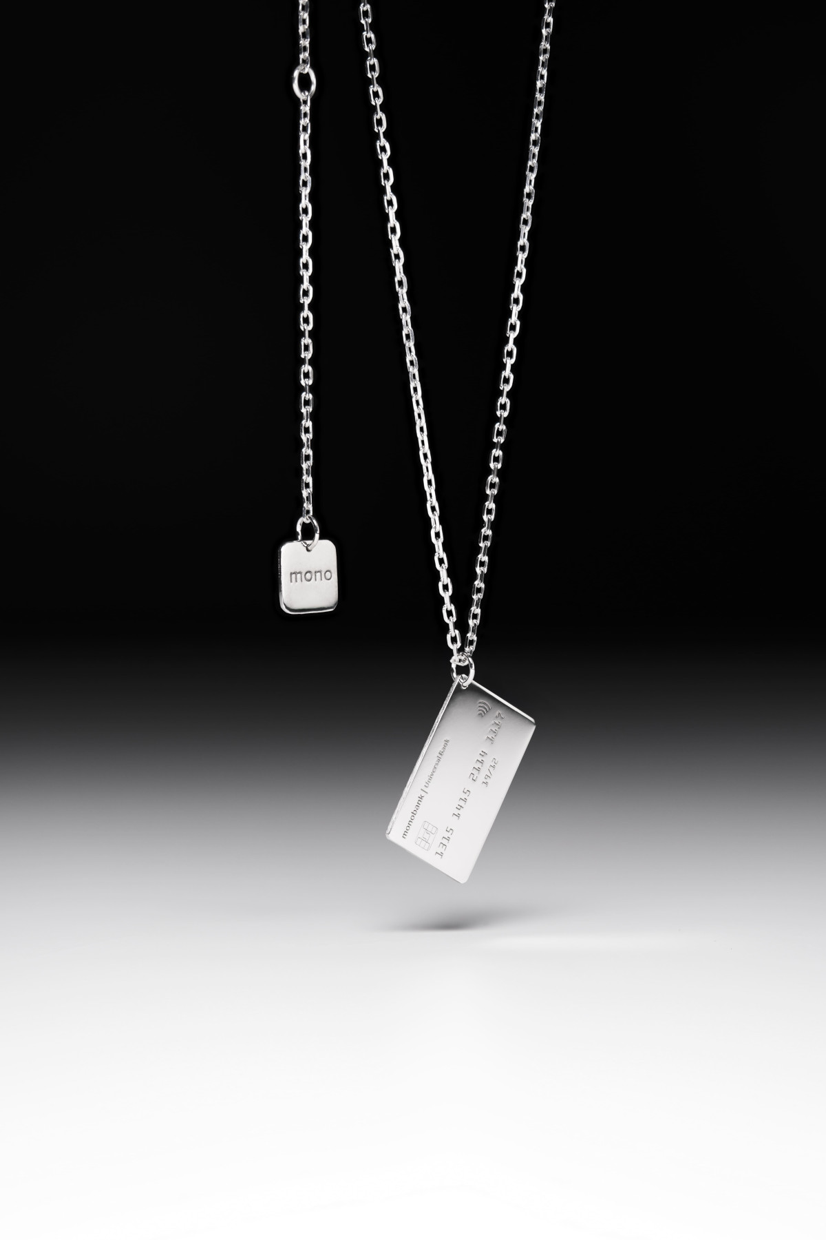 В ексклюзивній колаборації бренди презентують тендітне кольє на ланцюжку у вигляді monoкартки. Виріб виготовлений вручну та повністю повторює кожну деталь справжньої банківської картки.