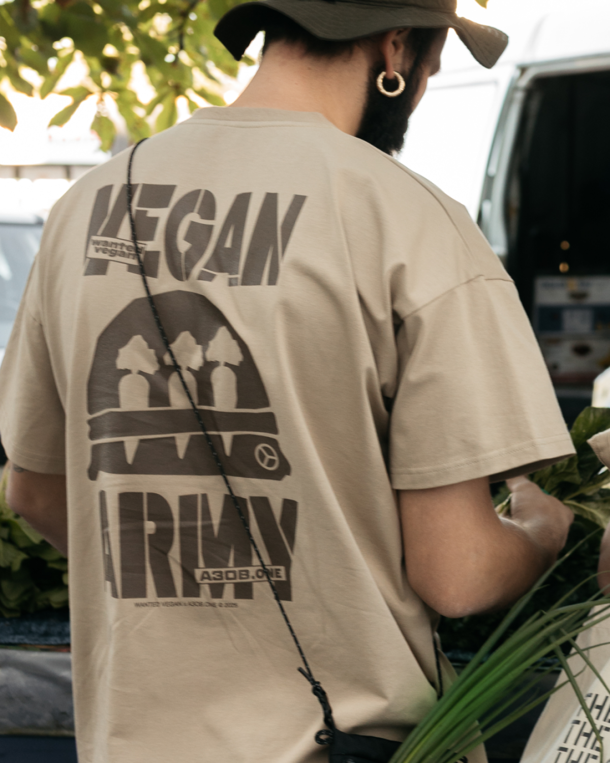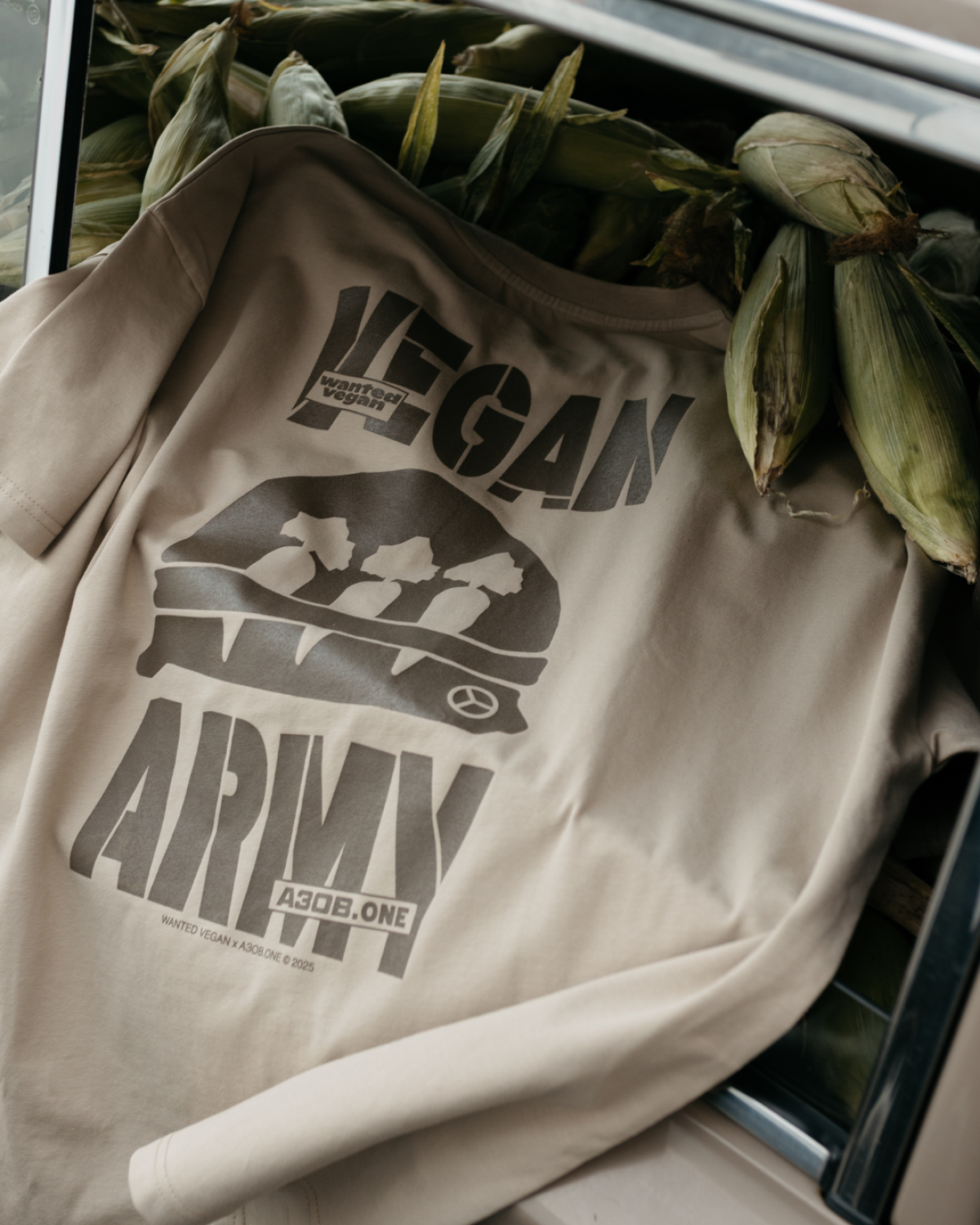 До своєї п’ятої річниці бренд рослинних альтернатив Wanted Vegan об’єднався з АЗОВ.ONE — офіційним відділом фандрейзингу бригади «Азов». У межах співпраці випустили лімітовану футболку VEGAN ARMY. Вона має фасон оверсайз і мінімалістичний дизайн — символічний принт із написом VEGAN ARMY.