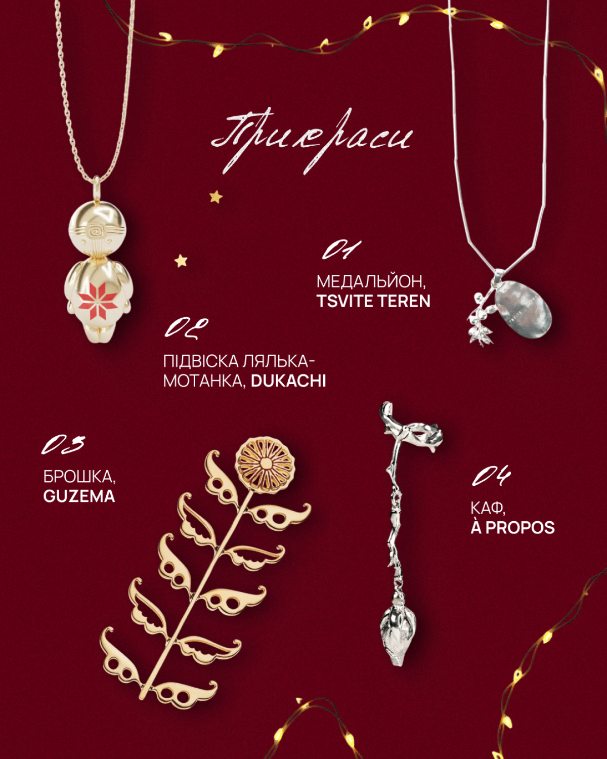 Прикраси завжди були особливим видом подарунка — інтимним, символічним, таким, що зберігає історії та емоції. Цього року особливу увагу привертають аксесуари, які мають глибокий сенс і здатні стати талісманами для свого власника. Універсальність і значущість таких прикрас робить їх ідеальними подарунками, адже вони не просто доповнюють образ, а й стають частиною особистої історії. Серед актуальних ідей — унісекс-прикраси, що підійдуть і чоловікам, і жінкам, як-от медальйон Цвіте терен, натхнений автентичними українськими мотивами. Він стане не лише стильним аксесуаром, але й оберегом. Інший варіант — брошка від Guzema, яка легко інтегрується у будь-який гардероб, додаючи тонкого шарму до повсякденного або святкового образу. Лялька-мотанка від Dukachi — це справжній символ української культури, що однаково гармонійно виглядає з легкою блузою чи теплим светром. Такі прикраси не лише універсальні, вони мають значення поза часом. Це подарунок, який залишиться актуальним багато років і може передаватися як сімейна реліквія — справжній жест турботи й любові, що переживе будь-яку мить.