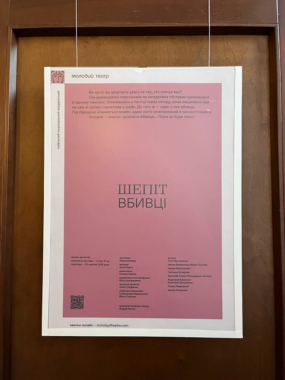 3 моєю любовʼю до детективів і Агати Крісті, вирішила з родиною сходити на легендарну виставу «Шепіт вбивці» за мотивами пʼєси «Мишоловка» Крісті. Дійсно вражаюча вистава, яка, до речі, написана Агатою в 1952 році. Вперше пʼєса була поставлена в Вест-Енді у Лондоні в тому ж році й успішно йде дотепер. На цей момент налічується понад 25000 спектаклів, що є абсолютним рекордом безперервності вистав. Тож особливо раджу тим, хто обожнює детективи й заплутані історії, ви точно будете у захваті!