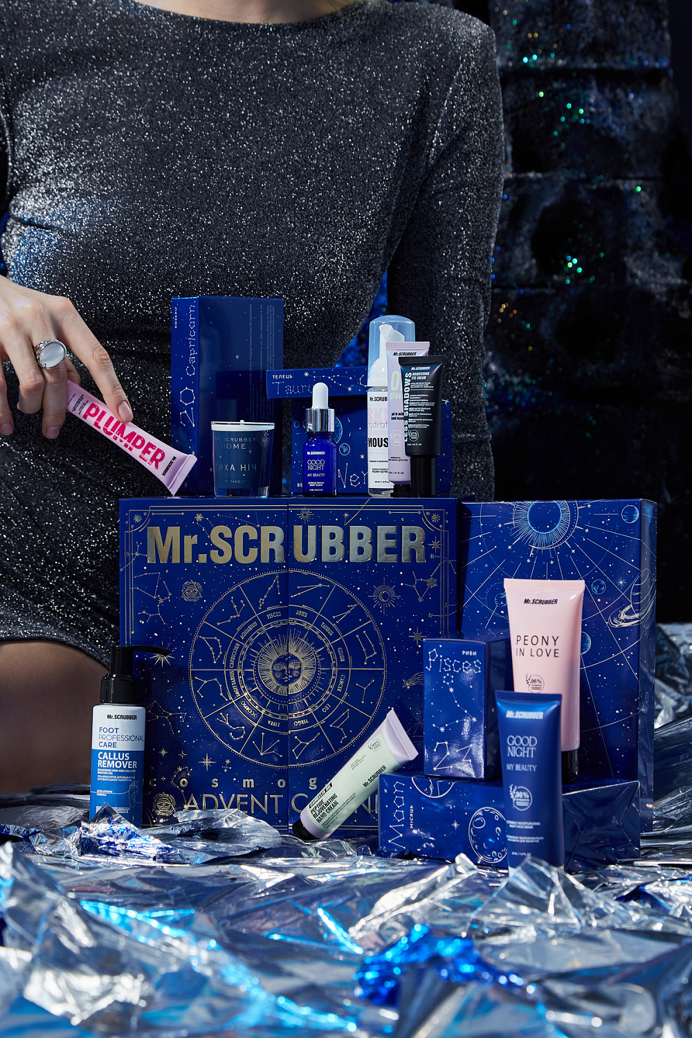 Великий куб відкривається, як чарівна книга, всередині якої — 24 коробочки. У кожній комірці — улюблена або унікальна, розроблена спеціально для адвенту, косметика. У цьогорічному календарі Mr.SCRUBBER представив надзвичайно багато новинок. 17 унікальних засобів створили спеціально для магічного святкового настрою. Більшість продуктів у боксі повнорозмірні, адже насолода від використання має тривати якомога довше!