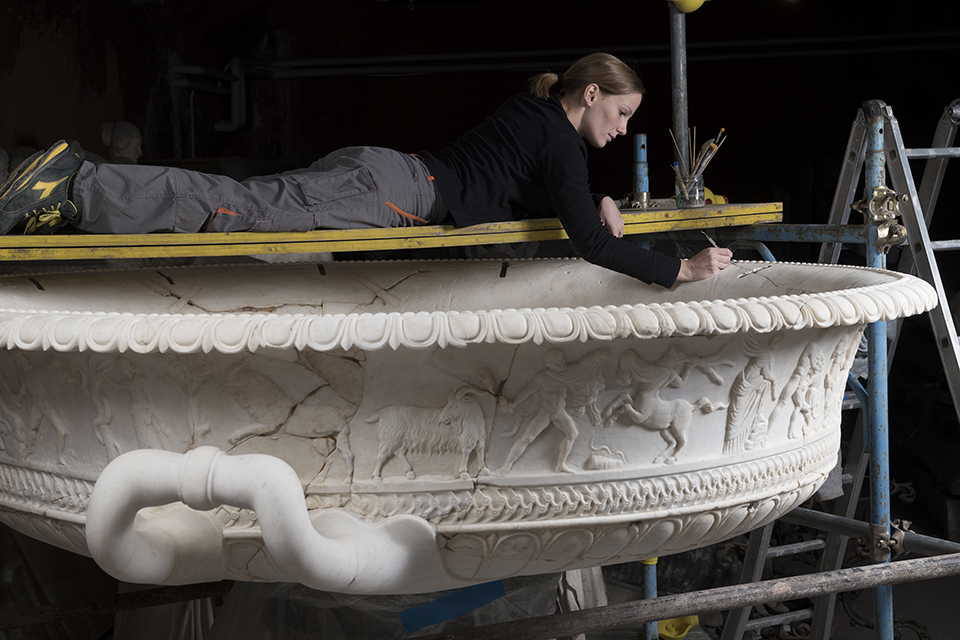 Мраморные бюсты, статуи, барельефы и саркофаги – всего 92 работы, были тщательно отреставрированы благодаря Bvlgari. Именно в Риме, более 130 лет назад, был основан этот ювелирный Дом, который сегодня заботится о восстановлении исторического наследия.
