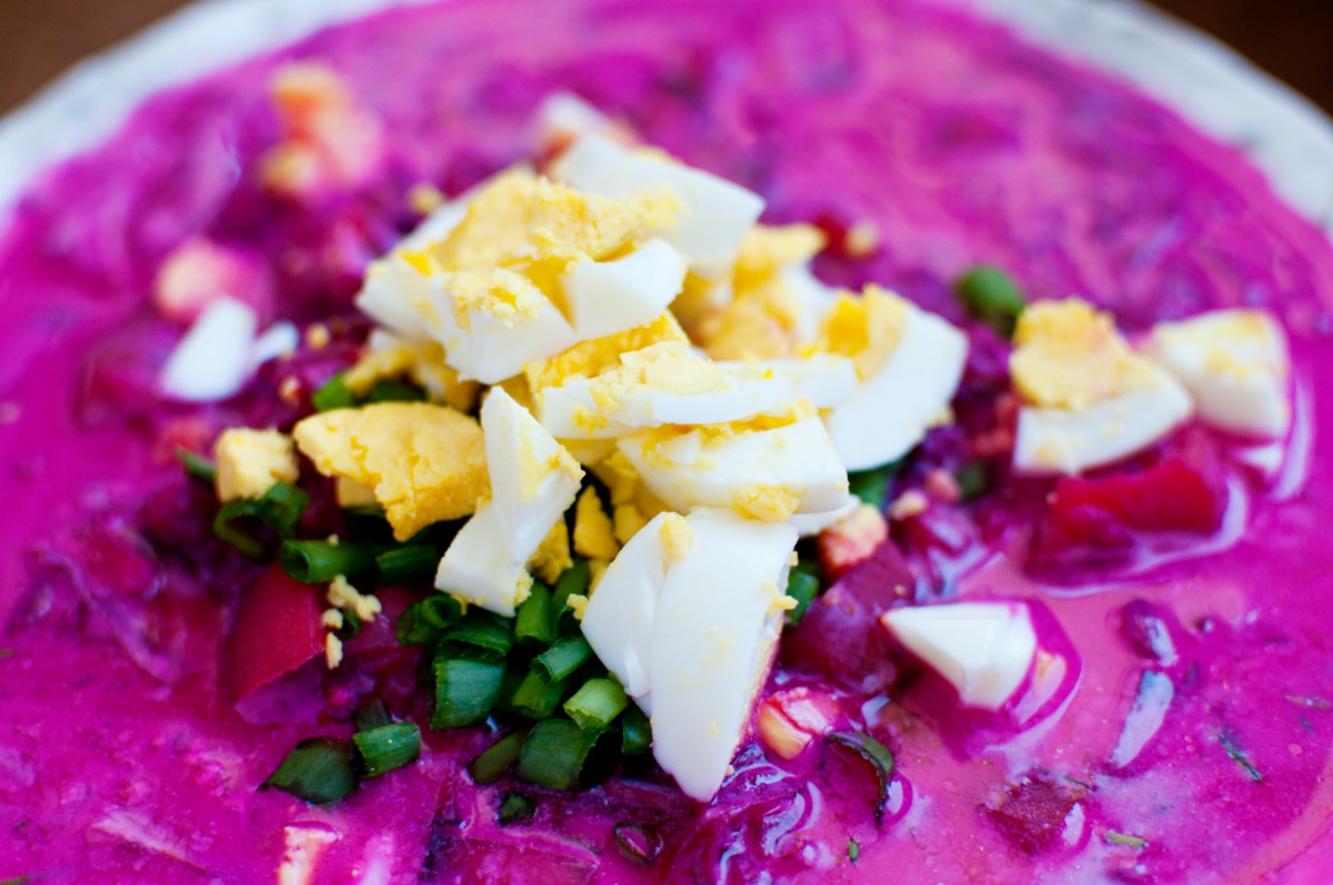 Совет Оксаны: чтобы ваш суп сохранил яркий свекольный цвет, не кипятите свеклу дольше 2–3 минут.