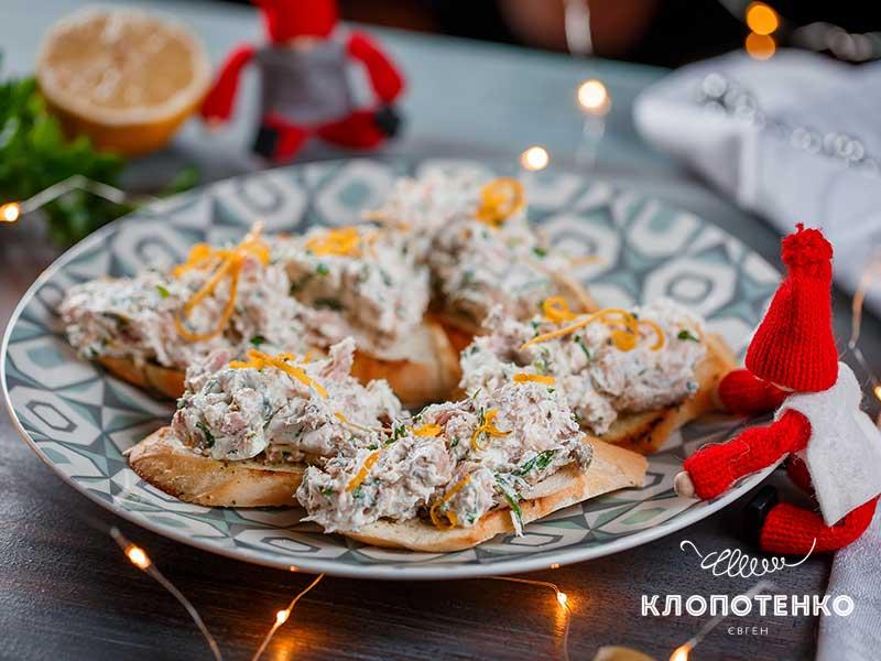 Идеальная закуска на новогодний стол — это кусок хлеба и намазка сверху. В принципе и думать больше не нужно, только выбрать хлеб и начинку. Вот так и создаются шедевры для застолья. Есть у меня один простой рецепт такой закуски — паштет с тунцом и оливками. Сочетание тунца, нежного крем-сыра, свежей зелени, оливок и лимонной цедры превратит ваш стол в отдельную причину для празднования.