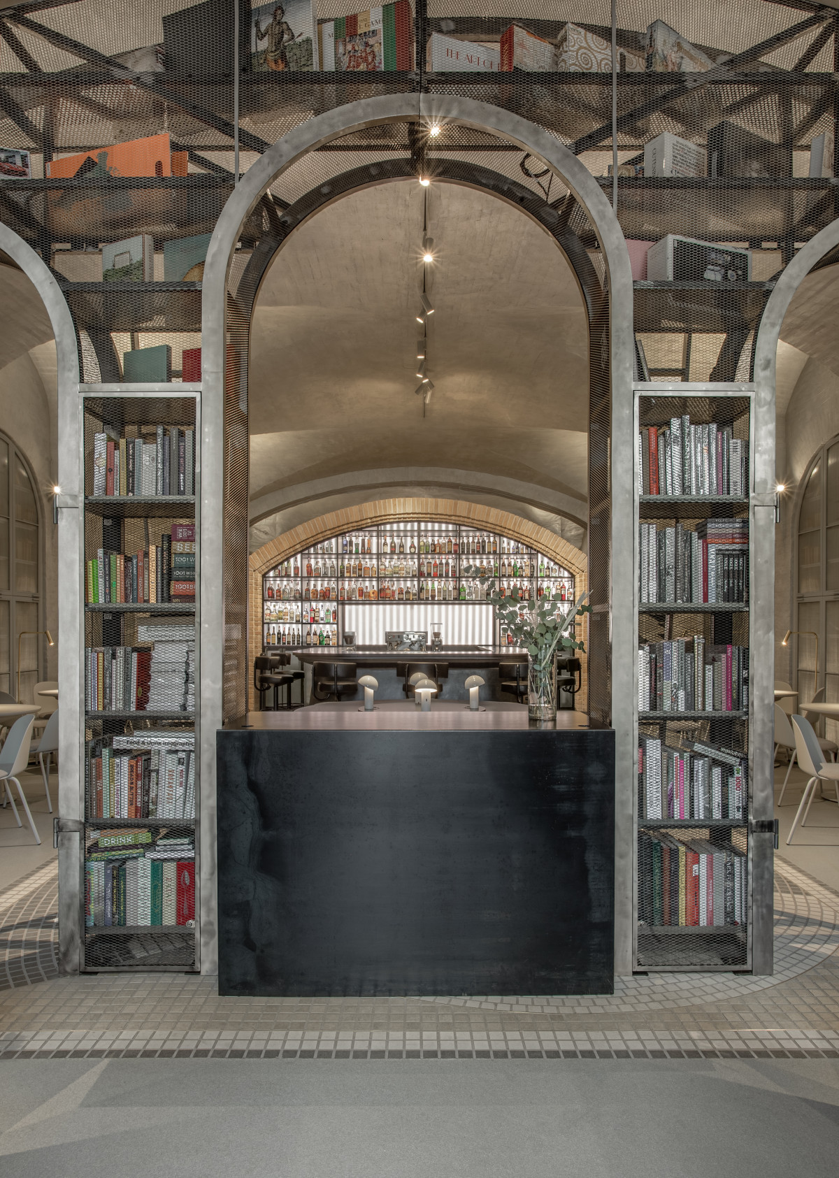 Чтобы избежать ассоциаций с пивным баром, архитекторы решили расставить акценты не столько на кирпиче, сколько на форме сводов. Их покрыли штукатуркой, которая проявляет рельеф материала и образует рефлексирующую поверхность. Так проявилась геометрия пространства, а отражающие своды приняли теплый свет, сделав помещение в серых и песочных тонах атмосферным и уютным.