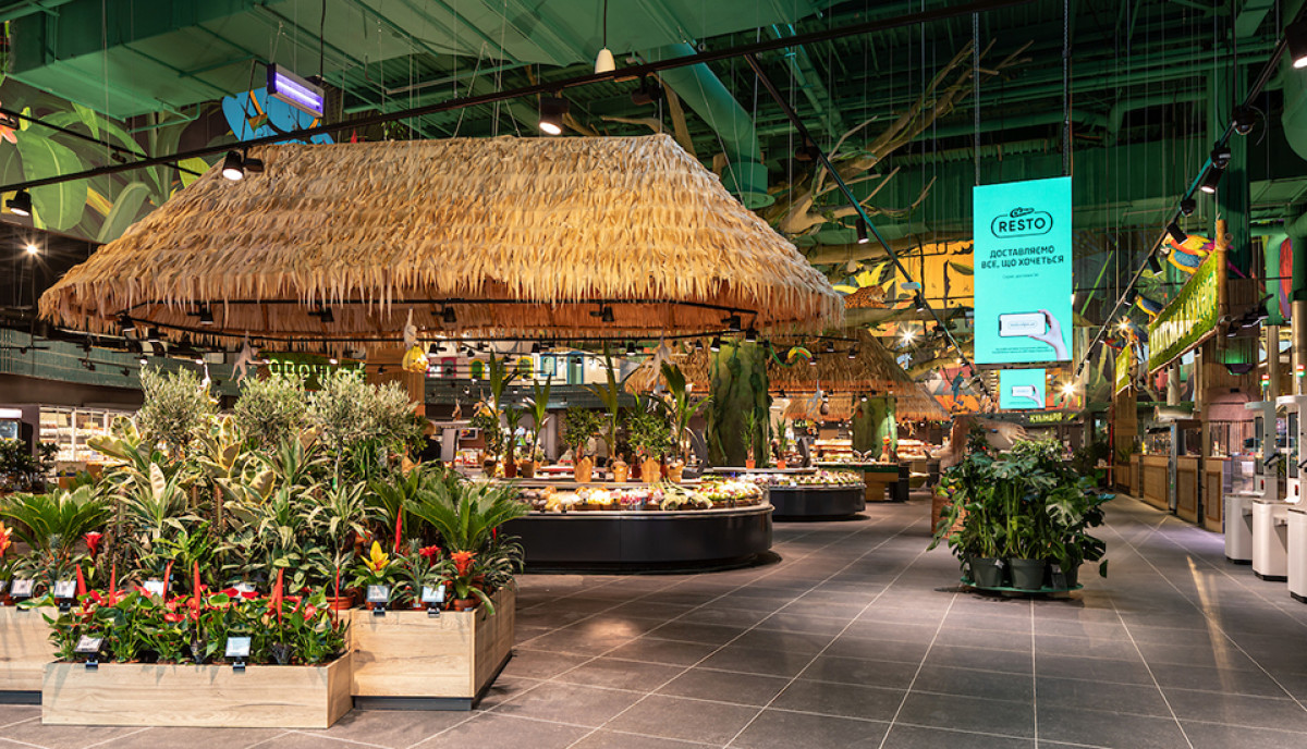Тепер шопінг у супермаркеті радше нагадує подорож цією країною. Починається вона у джунглях Амазонії з відділу фруктів та овочів, де, окрім екзотики, гості знайдуть й улюблені продукти від українських фермерів. Вражає й кількість арту в цьому магазині. На стінах – пішасао, бразильський стріт-арт, розписаний художником Таріком Кляйном, на підлозі – скульптура Merman, яку створили для однієї з найвідоміших подій у світі мистецтва, що проходить у пустелі Блек-Рок у штаті Невада.