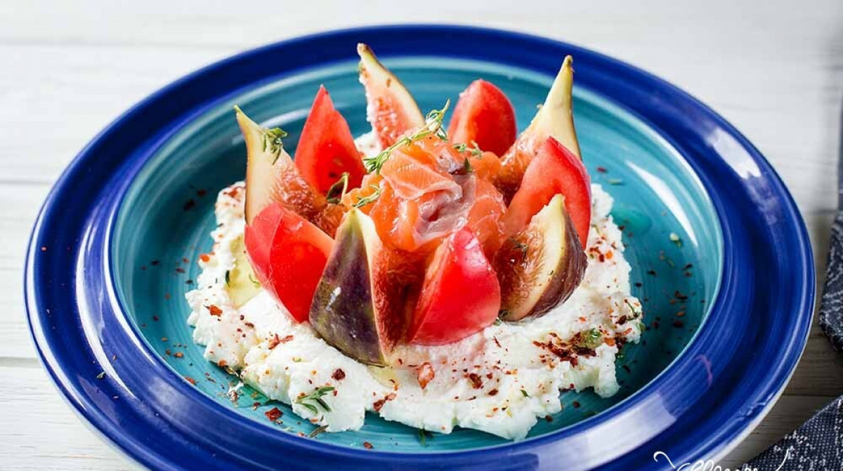 «Вы любите кулинарные эксперименты и привыкли удивлять близких и друзей чем-то оригинальным? Тогда этот салат с инжиром и лососем — то, что вам нужно. Он до невозможности простой в приготовлении, а выглядит очень изысканно. Так, как будто вам его подали в дорогом ресторане. Но, поверьте, главное в нем не вид, а сочетание вкусов. Нежного инжира с сладким томатом, слабосоленым лососем и мягкой рикоттой. Это просто божественно!» — говорит Евгений Клопотенко.