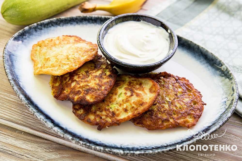 «Нежные и вкусные обжаренные кабачки — идеальная закуска для летнего меню. А еще из кабачков можно приготовить блинчики. Я уверен, что у многих они прекрасно получаются. Но я был бы не я, если бы не придумал что-нибудь новенькое, отчего вам бы непременно захотелось побежать на кухню и быстренько это приготовить. На этот раз я предложу вам оладьи из кабачков с бананом — очень необычное сочетание, которое мне понравилось и которым я решил обязательно поделиться», — говорит Евгений Клопотенко.