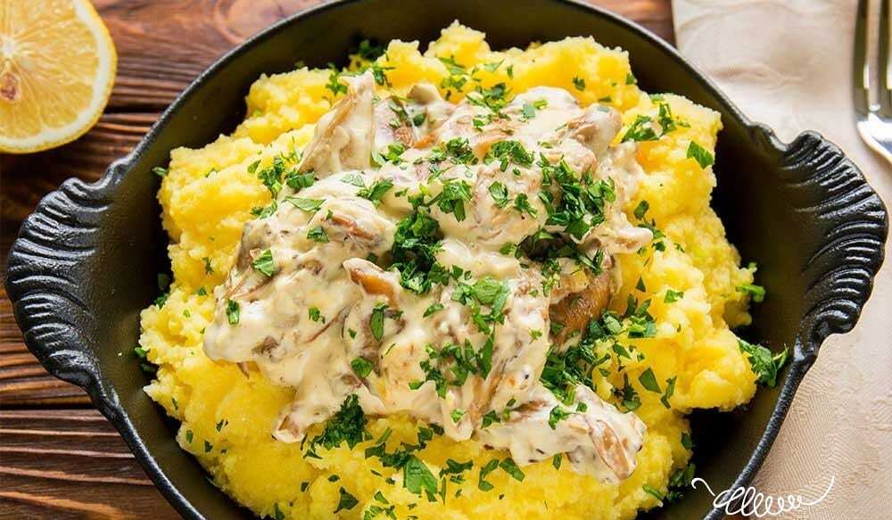 «Кукурузная мука, мамалыга или полента — удивительно вкусная каша, которую уверенно можно отнести к традиционной украинской кухне. Ее готовят с маслом, с добавлением соленого сыра, овощей или мяса. Она прекрасно сочетается практически со всеми этими продуктами. Я предлагаю свой вариант этой каши — полента с грибами и лимоном. Грибы со сливками в сочетании с орехами, соком и цедрой лимона идеально дополнят нежный вкус кукурузы», — говорит Евгений Клопотенко.