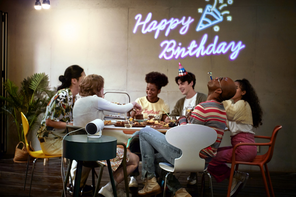 The Freestyle поєднує в одному легкому й портативному девайсі проєктор, смартдинамік і пристрій для зовнішнього освітлення. Що стосується портативності, The Freestyle важить всього 830 грамів і дає змогу без зусиль перетворити будь-яку поверхню на екран. На відміну від громіздких конструкцій звичайних проєкторів The Freestyle оснащено регульованою підставкою, що обертається на 180 градусів, тож користувачі зможуть і без окремого екрана демонструвати високоякісне відео будь-де — на столі, підлозі, стінах чи навіть на стелі.
