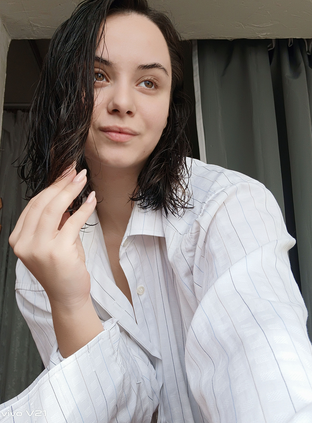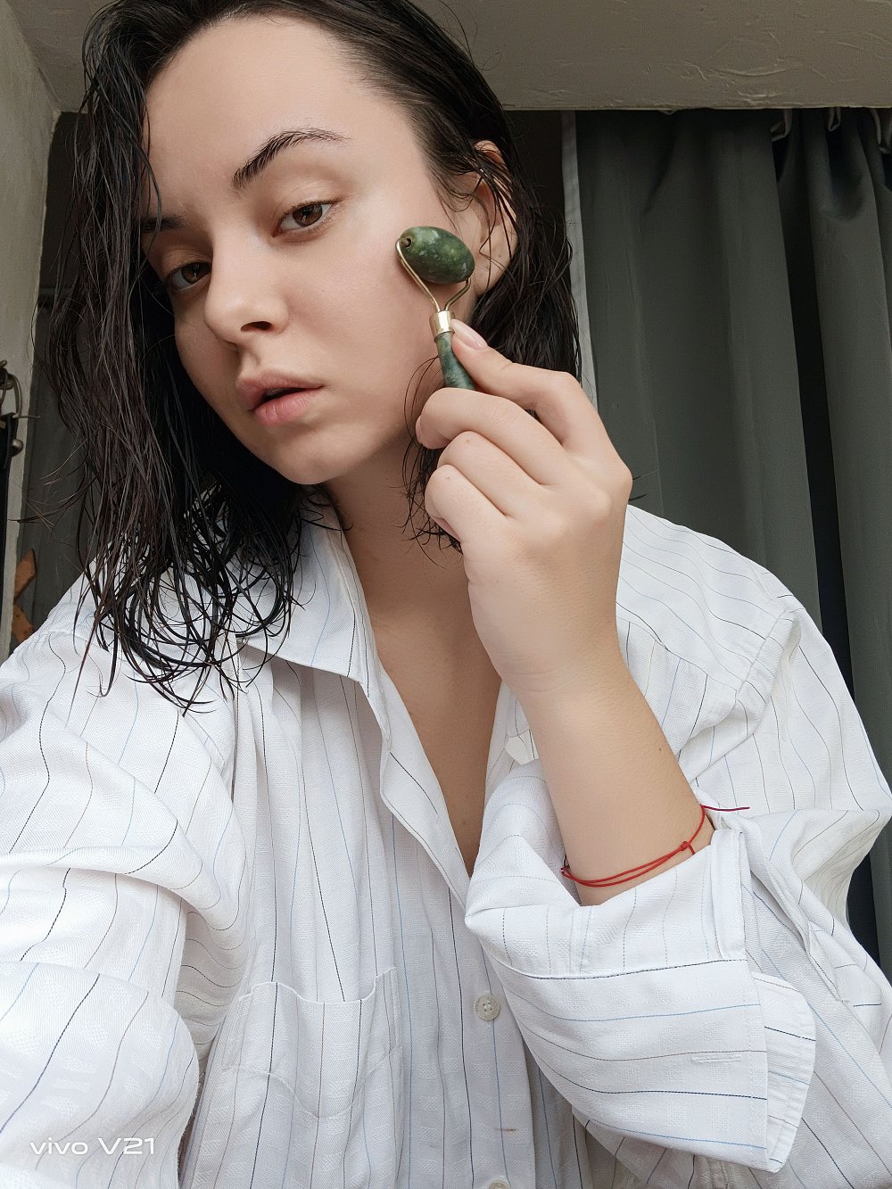 Скрасить этот рутинный процесс у меня получается, когда я представляю себя моделью. Включаю любимую музыку и делаю несколько фото. Утром я могу выглядеть на снимках не совсем презентабельно, но, отыскав функцию «Красота» в смартфоне Vivo V21, я наконец выдохнула облегченно. Особенно мне понравилась естественность эффекта. Я слегка сгладила свой тон кожи и добавила блеска глазам. Раньше я использовала маски в Instagram, но чаще была похожа на пластиковую куклу, чем на живого человека.