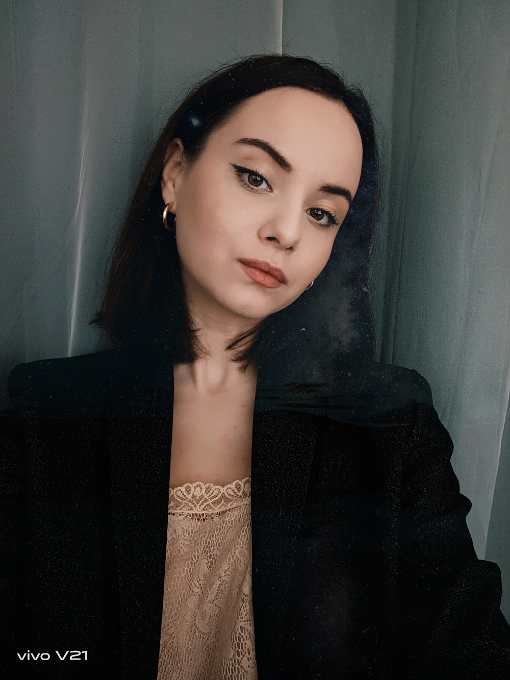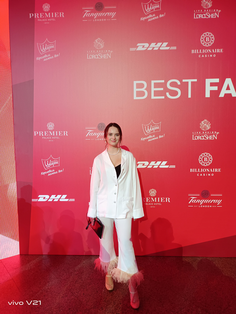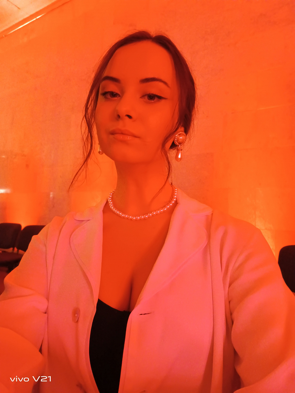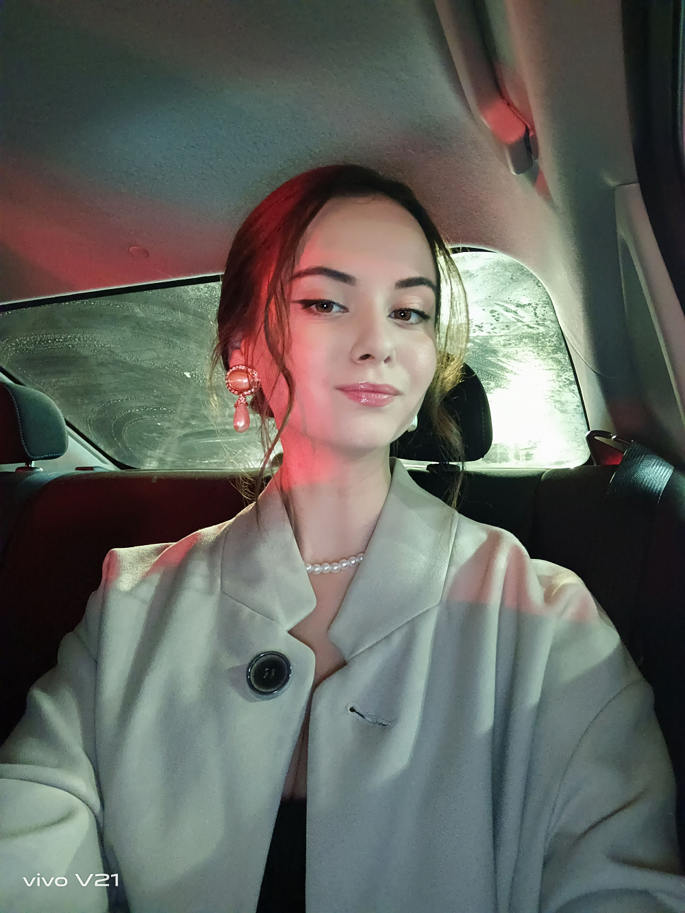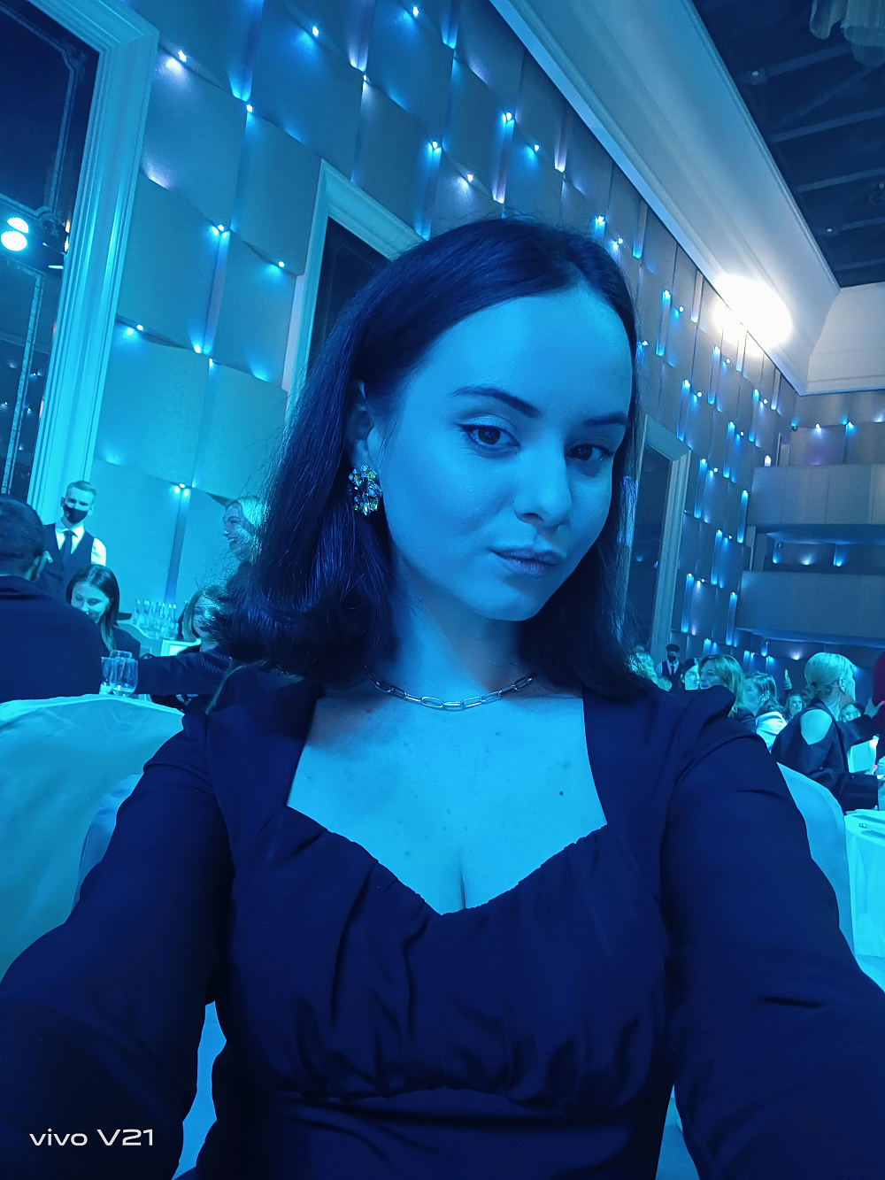 Между сборами я быстро заканчиваю работу и пулей залетаю в такси. Вспоминаю, что даже не успела сделать фото своего красивого образа перед выходом. В машине совсем темно, но я все же решаюсь попытать удачу. Хорошо, что Vivo V21 («король селфи», как я его позже стала называть) имеет 44 Мп OIS фронтальную камеру с двойной подсветкой. Она имитирует студийное освещение и сделала мои фото очень яркими. У меня был выбор между режимом «Аура» с мягким освещением и вспышкой для селфи слева и справа. Я остановилась на втором варианте, так как нужна была тяжелая артиллерия. А благодаря высококачественной оптической стабилизации изображения мое фото получилось четким несмотря на то, что в машине изрядно трясло во время езды по киевским дорогам. Вы сами в этом убедитесь, посмотрев фото.