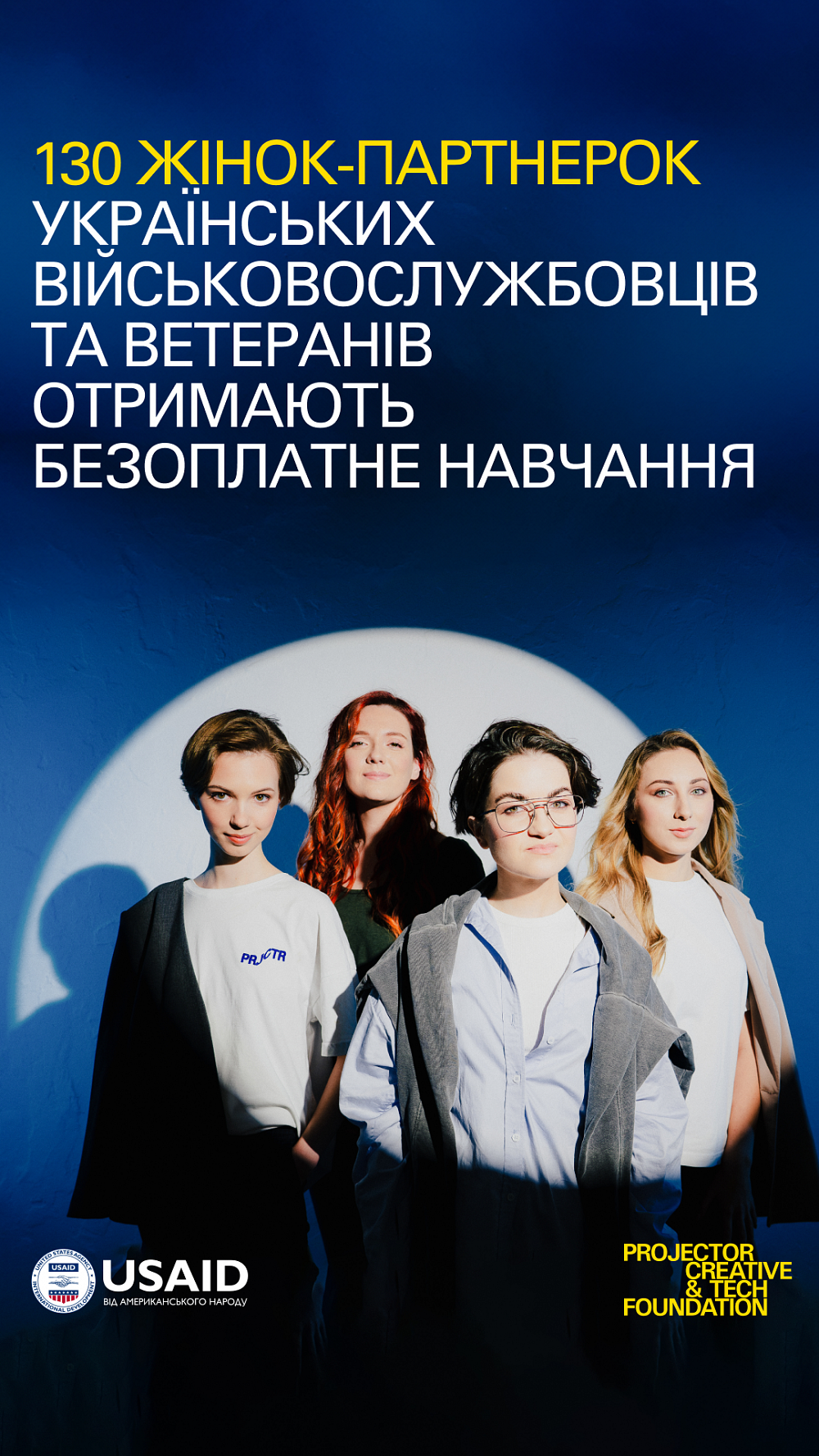 Projector Foundation запускає безоплатне онлайн-навчання у сфері креативних та IT-індустрій для жінок-партнерок військовослужбовців та ветеранів. Проєкт допоможе здобути професійні навички в безпечній спільноті та посприяє подальшому кар’єрному зростанню студенток.