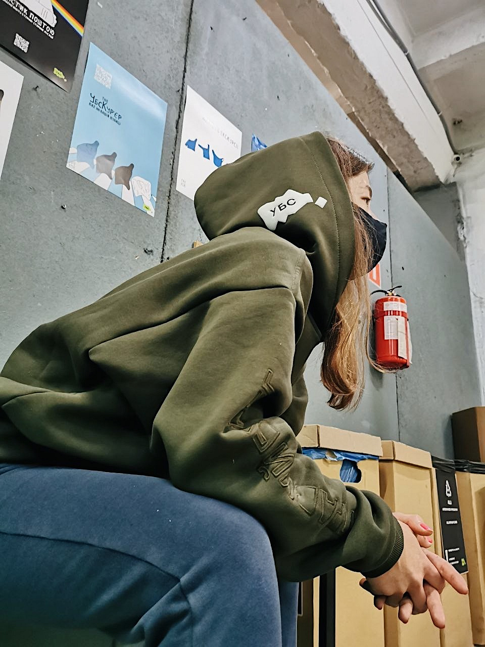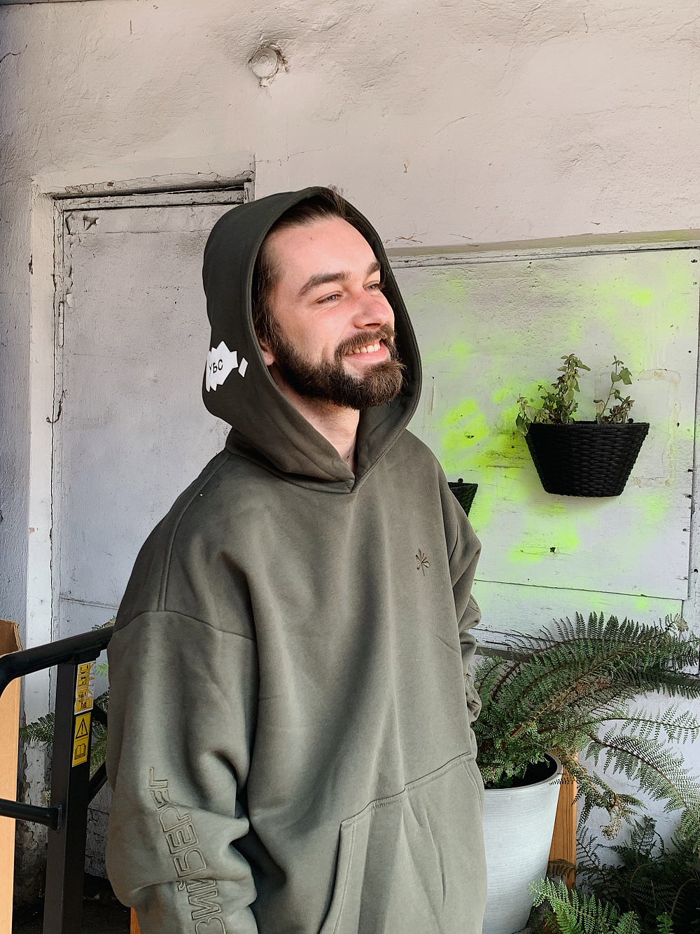 Ці худі передали як благодійний внесок — так одяг допоможе робітникам першої в Україні громадської станції сортування зігрітися Бренд холодну пору року.