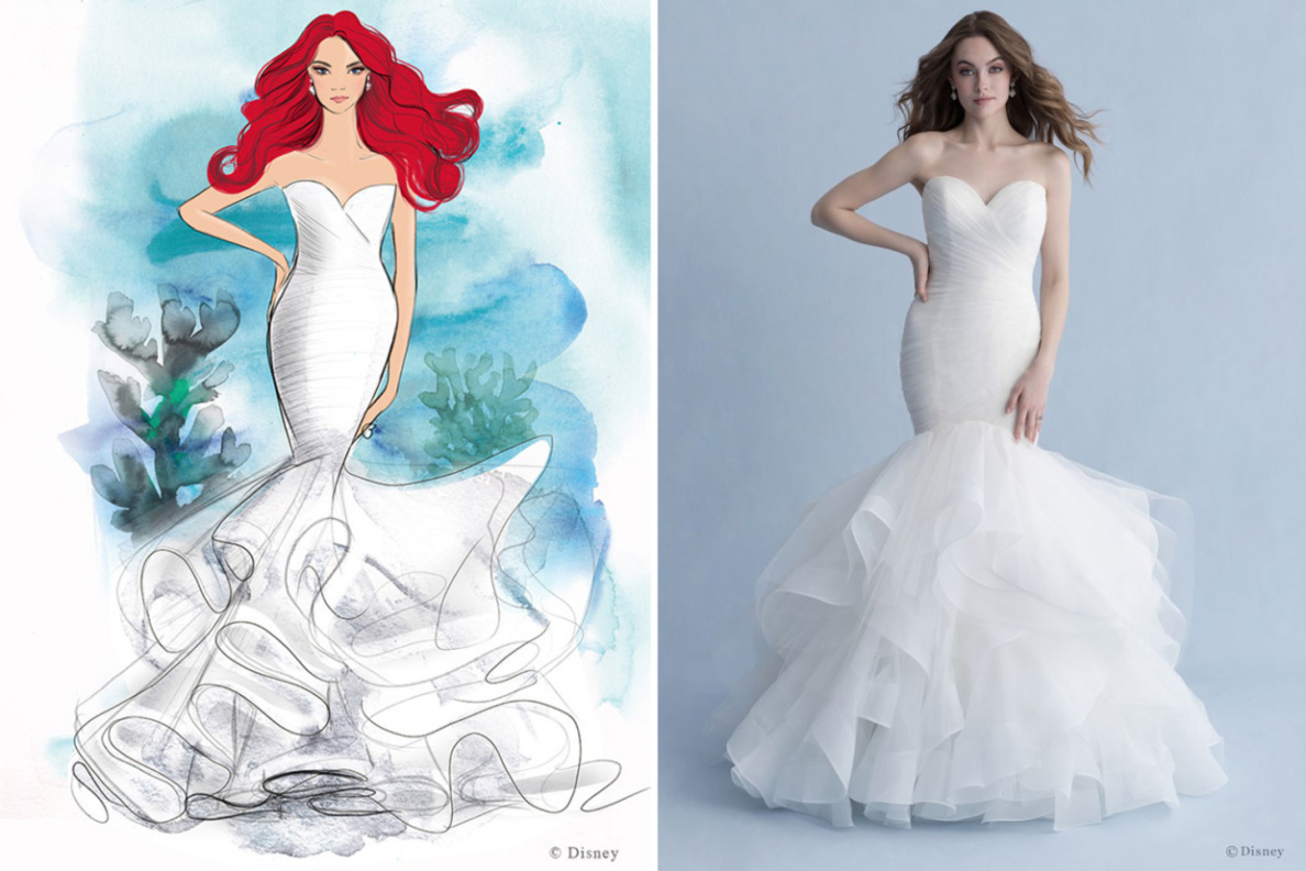 4. Компанія Disney оголосила про запуск лінійки весільних суконь за мотивами знаменитих нарядів принцес з мультфільмів студії. Разом з Allure Bridal фахівці Disney розробили 16 різних варіантів весільних суконь. Серед них — сукні Жасмин, Попелюшки, Покахонтас, Рапунцель, Принцеси Тіани, Аріель, Белль і Аврори. Ошатне вбрання пошите з мікадо і шовку, прикрашене біесером та всипане пайєтками. Повітряні шлейфи символізують ту чи іншу принцесу з казки.