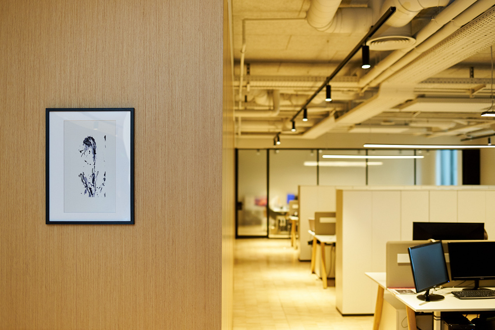 Художню виставку вдалося організувати за два тижні. Роботи митця пов`язані з простором не лише естетично, а й сенсово — вони зачіпають доволі особисті теми й внутрішні переживання. Тож ідея показати їх в офісі, особистому просторі співробітників, підкреслює цю приватність.