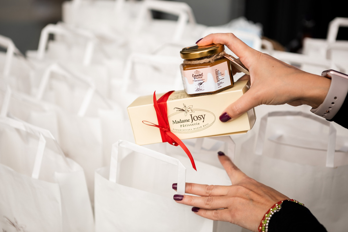 У всіх слухачів були стильні канцелярські набори від весільної агенції Your Story, антисептики та смачні компліменти від французької кондитерської Madame Josy у вигляді улюблених десертів Леоніда: птифурів та соленої карамелі.