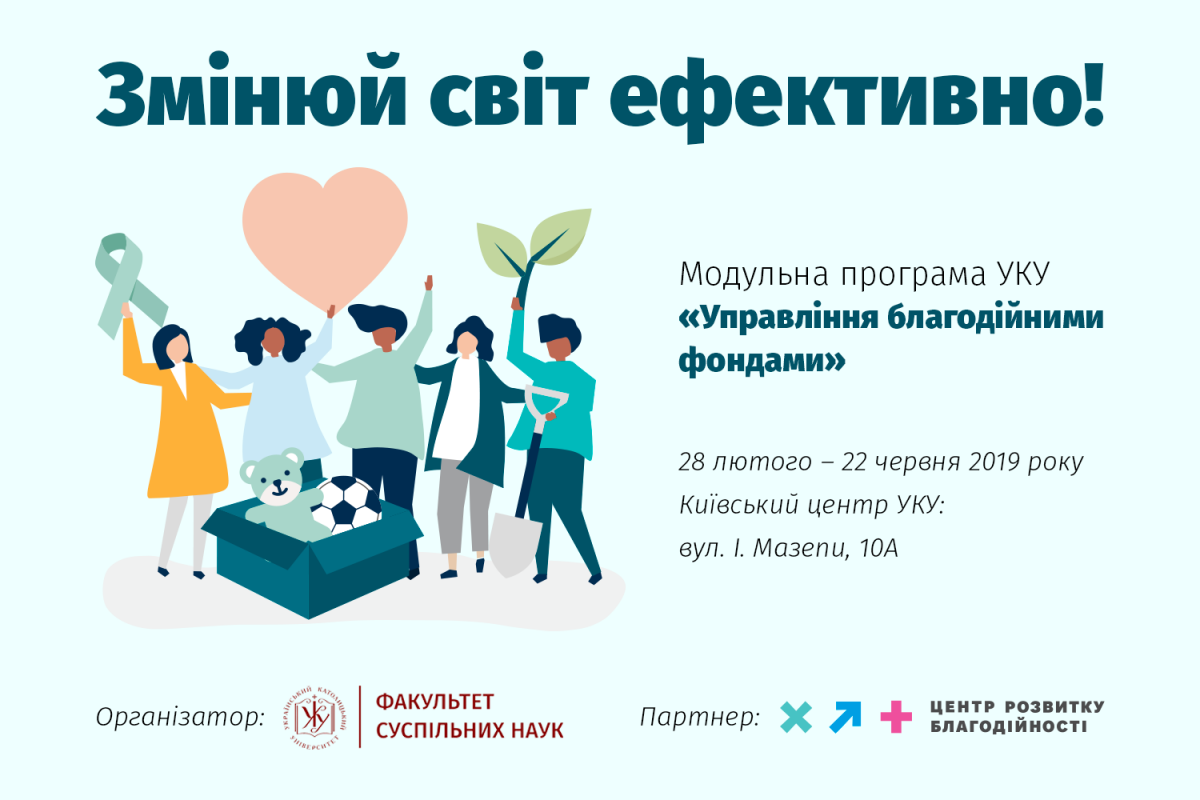 Украинский католический университет запускает первый в Украине комплексный курс «Управление благотворительными фондами». Его программа нацелена на развитие эффективной филантропии и альтруизма в стране. Тренерами станут ведущие специалисты по фандрейзингу, стратегированию, праву, коммуникациям и менеджменту. Программа стартует 28 февраля в Киеве и рассчитана на четыре месяца. Инициатор программы, директор Киевского центра УКУ Оксана Кулаковская рассказала откуда пришла идея создать программу:
