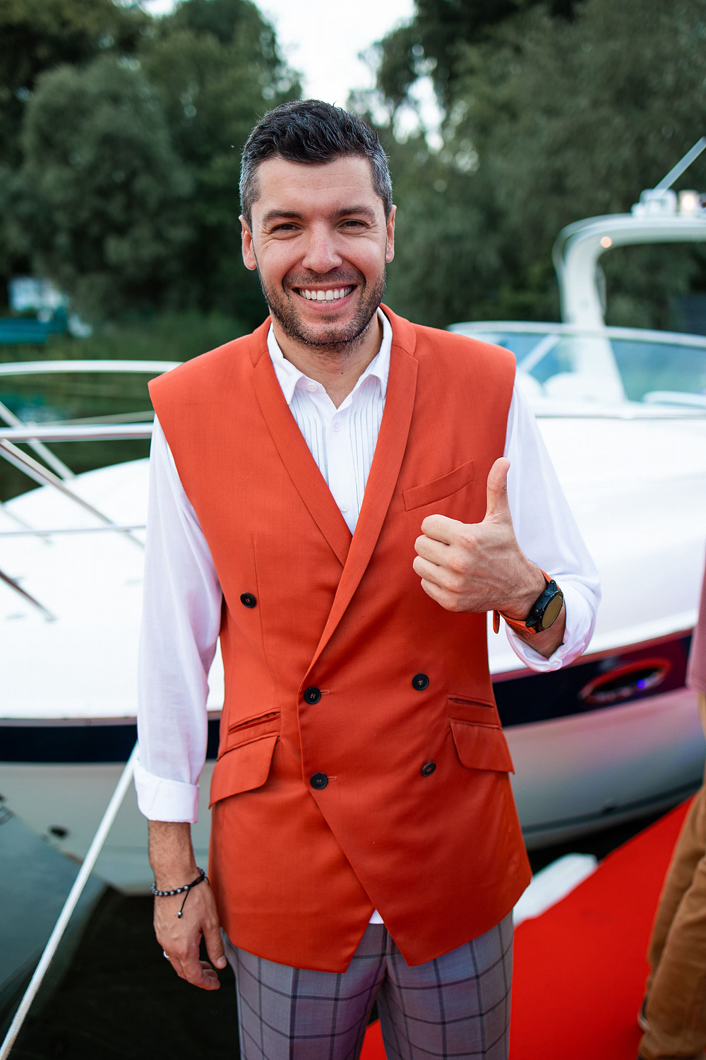 На борту зеркального катера Black Mirror Boat, пришвартованного у ресторана, была обустроена отдельная лаунж-зона, в которой гостей угощали итальянским просекко San Mare. А на элегантном катере-кабриолете Sparkling Boat для всех желающих были организованы прогулки по Днепру.