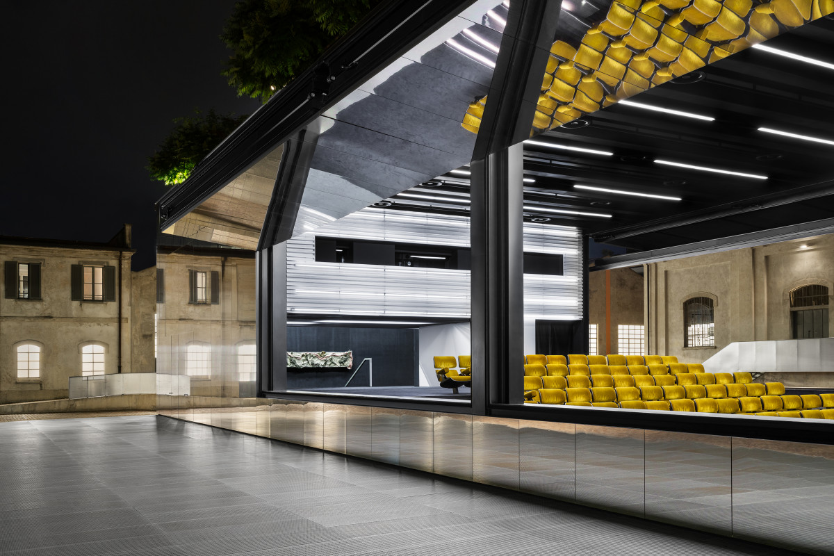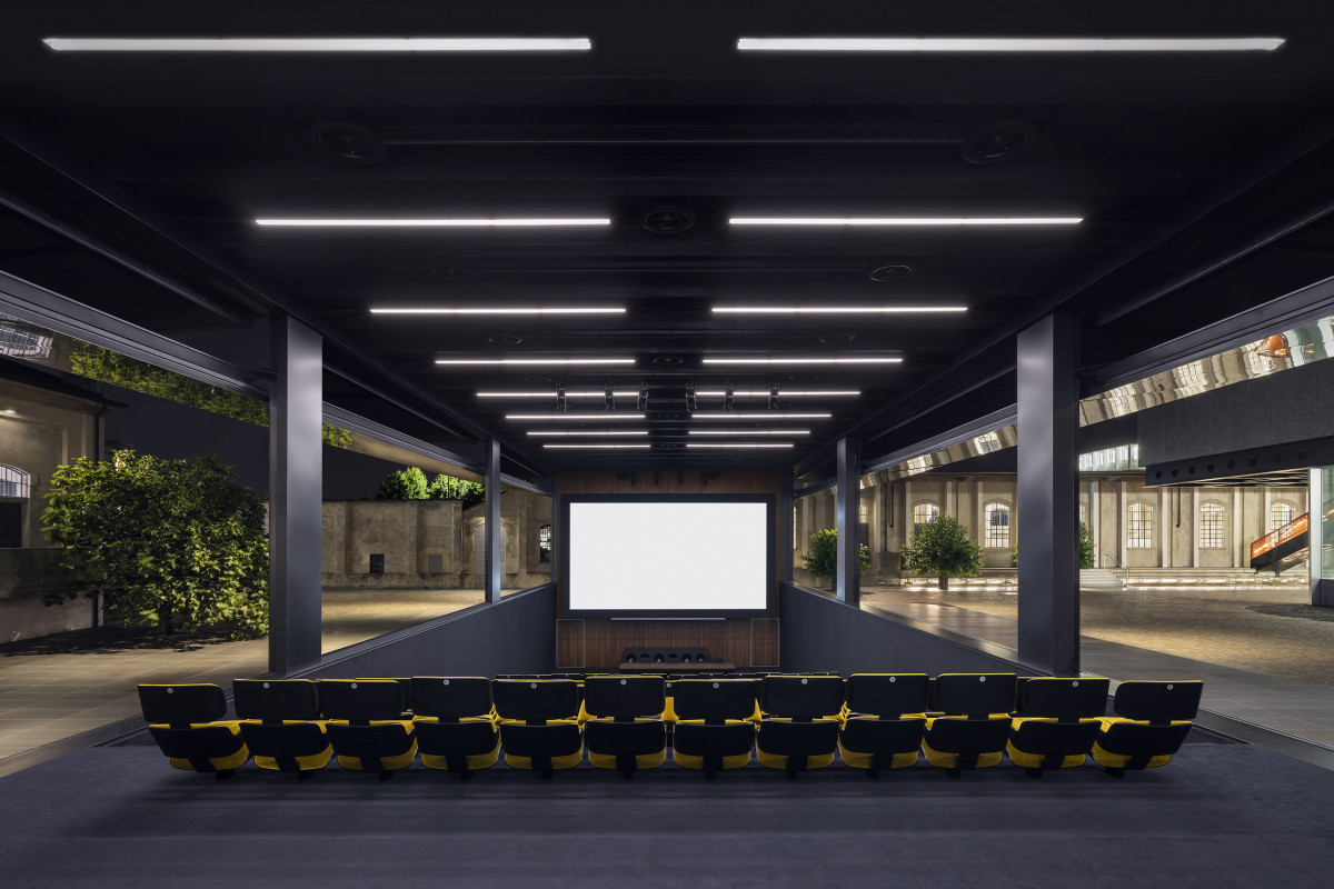 По случаю возобновления кинопрограммы Fondazione Prada, здание Cinema претерпит радикальные изменения. Впервые его двойные двери будут полностью открыты, создавая гибридную среду: проекционный зал, характеризующийся постоянным визуальным осмосом между внутренним пространством, внутренним двором и другими зданиями архитектурного кампуса, задуманного Ремом Колхасом.