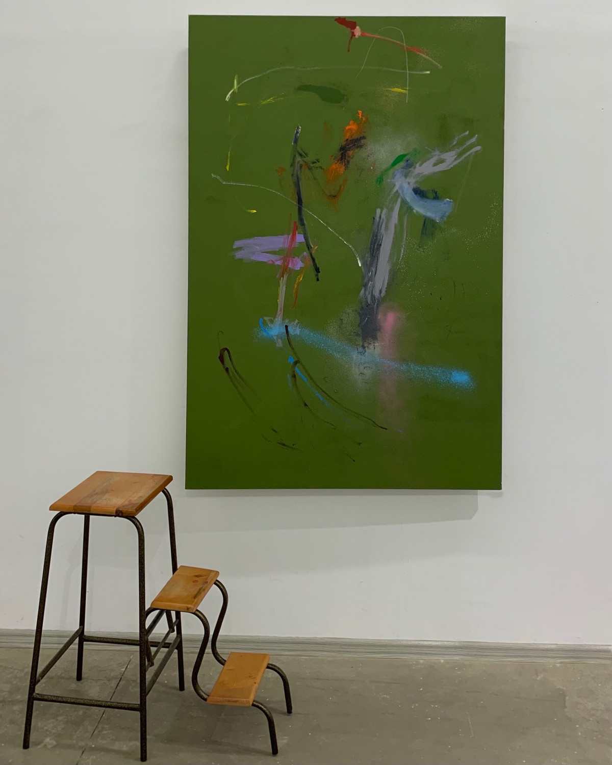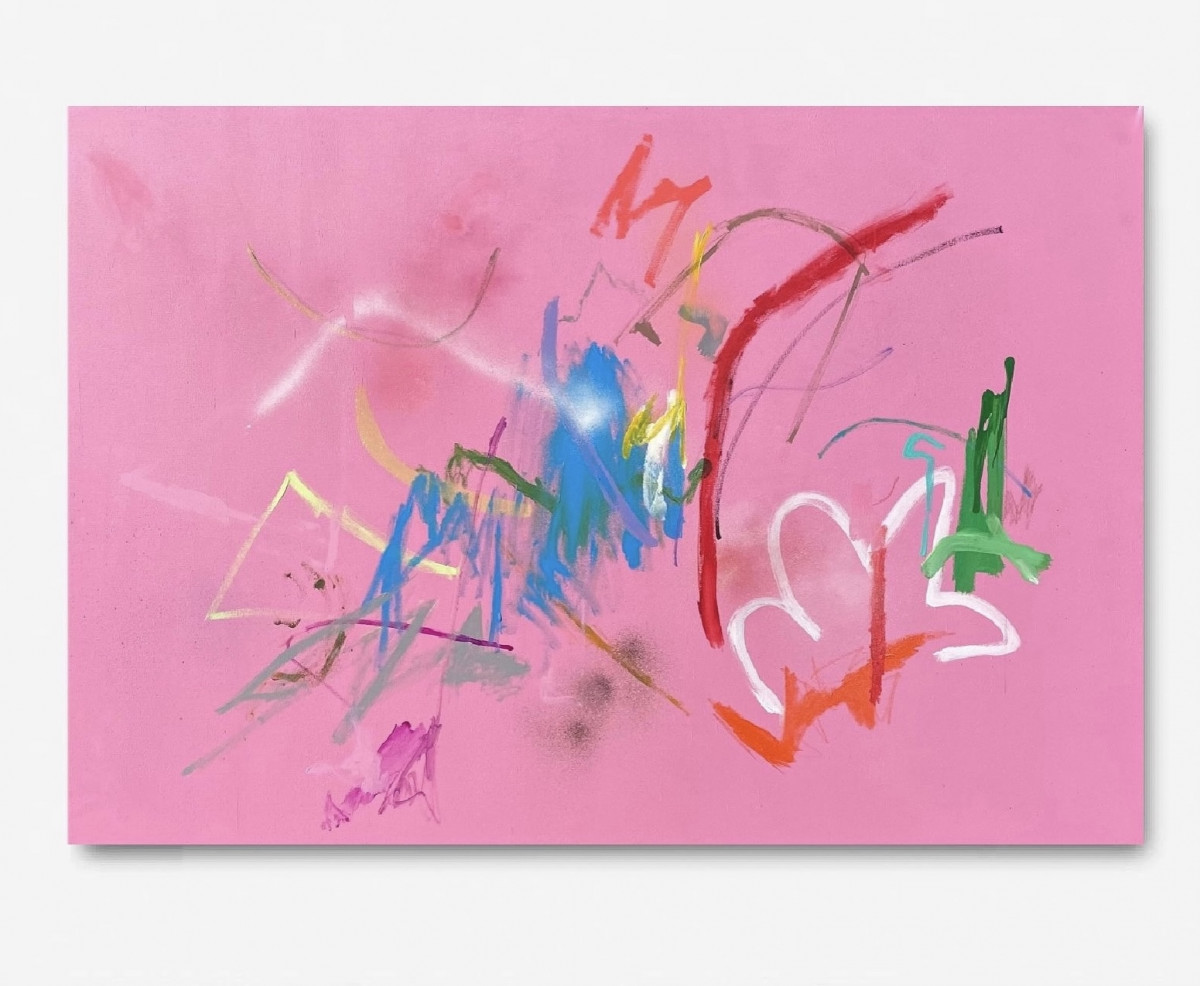 Картина розового цвета — оммаж Пэрис Хилтон, иконе 2000-х годов, чьи образы сегодня вновь появляются на мудбордах дизайнеров. Влад был влюблен в нее в детстве так же сильно, как сегодня в коллекции Кима Джонса. Креативному директору мужской линейки Dior он посвятил серый холст. Серый — любимый цвет Кристиана Диора, которого Джонс цитирует в своей работе; абстрактные линии символизируют новаторскую работу дизайнера в историческом модном доме.