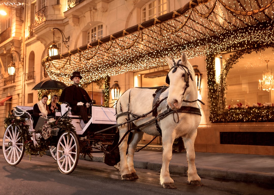 Декорированная флористом отеля Филиппом Гийо, рождественская карета проедет по центру Парижа, открывая гостям Город света во всей своей красе. Маршрут катания: мост Александра III, Опера Гарнье, Елисейские поля, Собор Парижской Богоматери, улица Фобур Сент-Оноре.