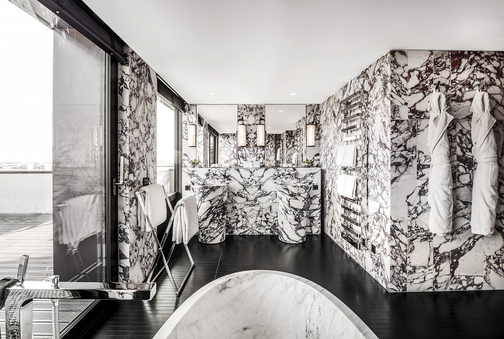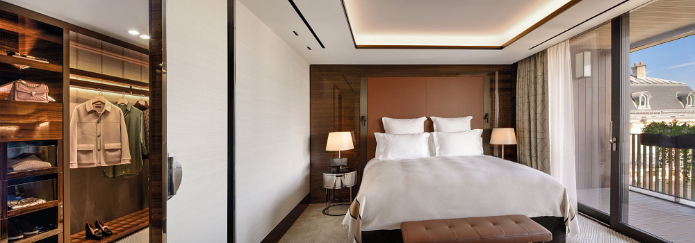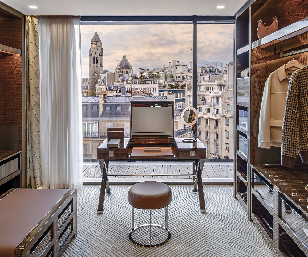 Bvlgari Hotel Paris розташований у розкішній історичній будівлі французької столиці. До послуг гостей 76 чудово оформлених номерів та люксів, спроєктованих, як і громадські приміщення готелю, міланською архітектурною студією Antonio Citterio Patricia Viel, яка в рамках проєкту співпрацювала з архітекторами Valode & Pistre для реновації фасаду та конструкції будівлі.