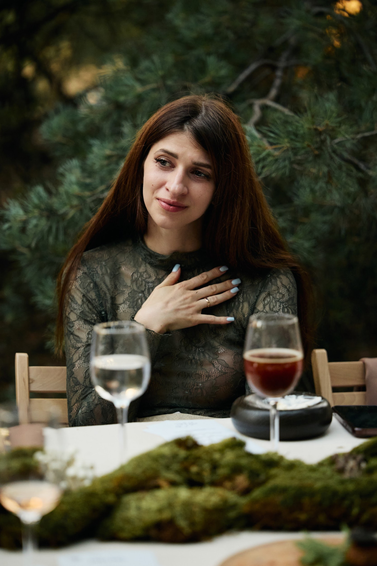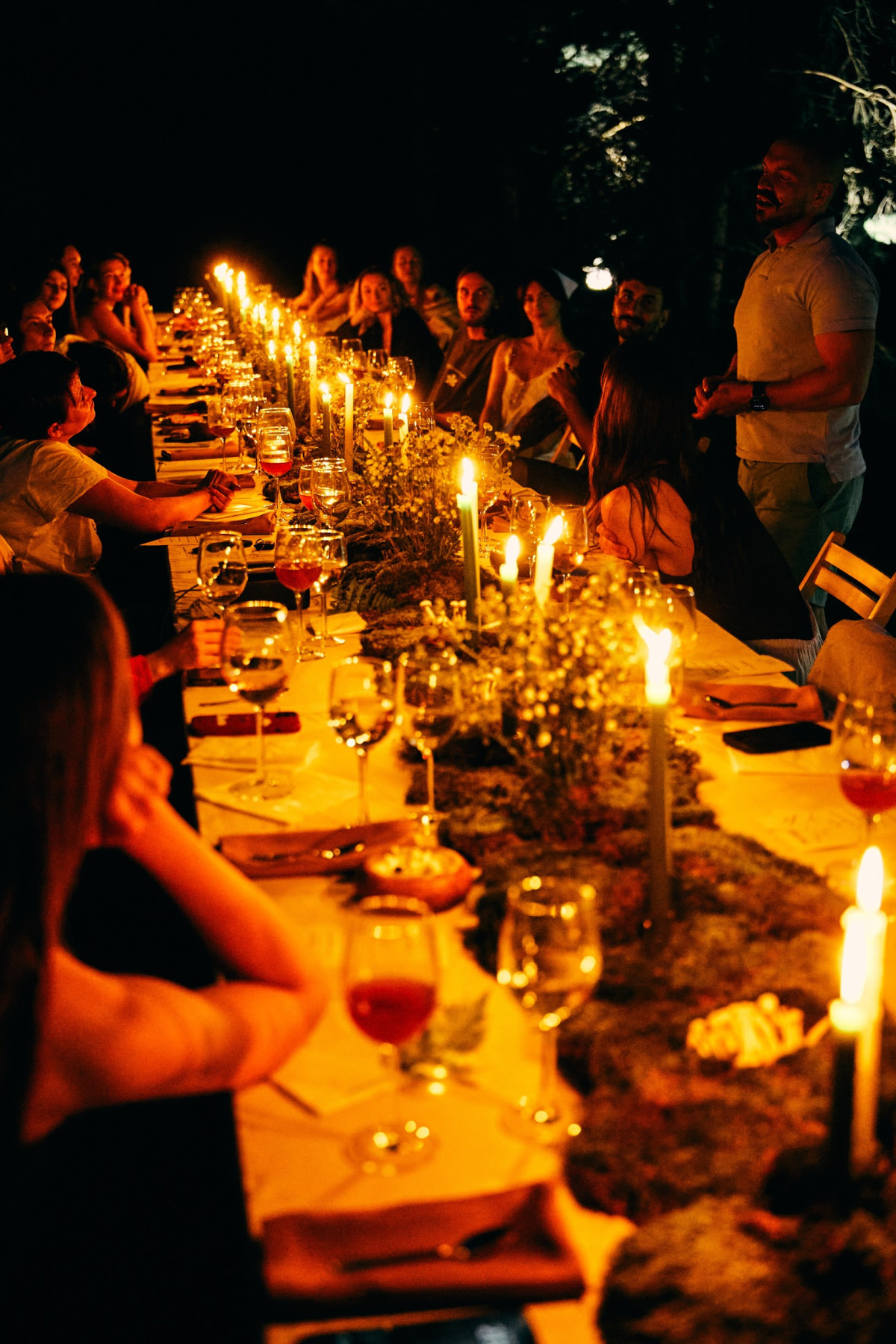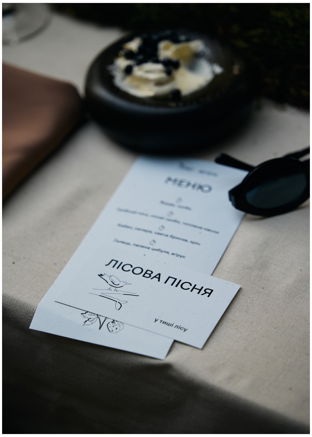 Вечеря стала окремою подією. Під відкритим небом, з живою сопілкою, герої «Лісової пісні» перетворили формат застілля на ритуал сповільнення. Страви від шефа Артема Кабулахіна — від вурди з грибами до гольця з паленою цибулею і сунично-горіхового десерту — продовжили лінію глибокого зв’язку з природою. А далі — вогнище, розмови, тиша. Без гучної музики, лише дихання лісу й відчуття єднання з лісом.