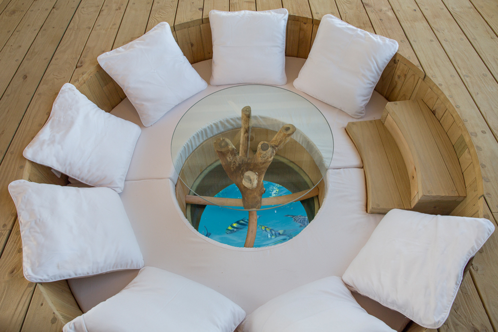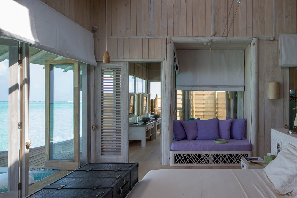 Каждая из вилл на воде оснащена собственным бассейном и раздвижной крышей: гости курорта могут насладиться видом звездного неба из собственной спальни. В случае дождя крыша закрывается автоматически. Интерьеры курорта созданы Эвой Шивдасани, сооснователем группы Soneva, с использованием экологичных материалов высочайшего качества.