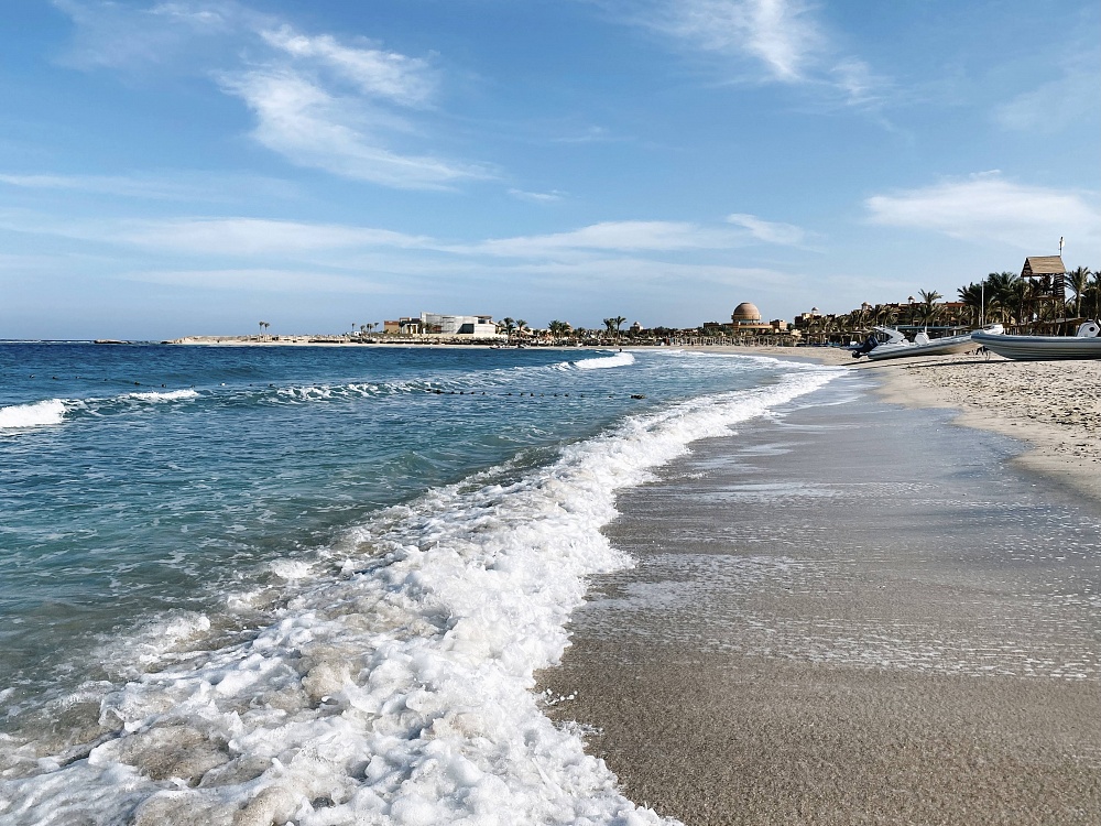 У меня всегда вызывают удивление люди, которые на отдыхе предпочитают бассейн морю или океану. В Египте, на мой взгляд, подобные действия можно сравнить с преступлением. Как человек, который родился у моря и знает, с чем сравнивать, скажу: в Марса Аламе такая красивая вода, что дух захватывает. Моя коллега из Vogue Виолетта отлично сказала: «Эту воду как будто специально покрасили!». Действительно, таких глубоких сапфировых, аквамариновых и насыщенно-бирюзовых оттенков морской воды я не припомню ни в одном другом путешествии.